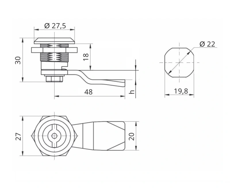 Замок для електрощитового обладнання RZ L181.1.A під ключ метелик Цинк