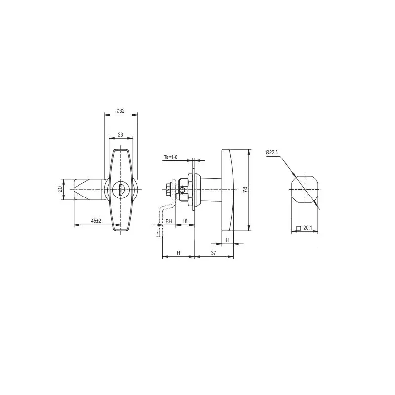 Застосування замка з т-подібною ручкою: промислові шафи з тонколистового металу, панелі обладнання.