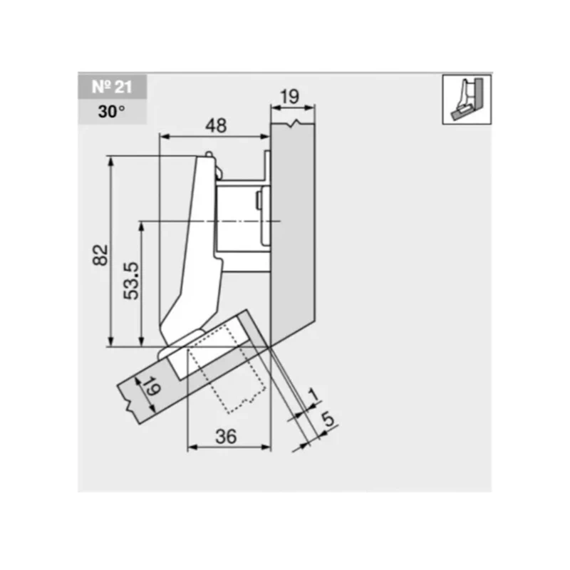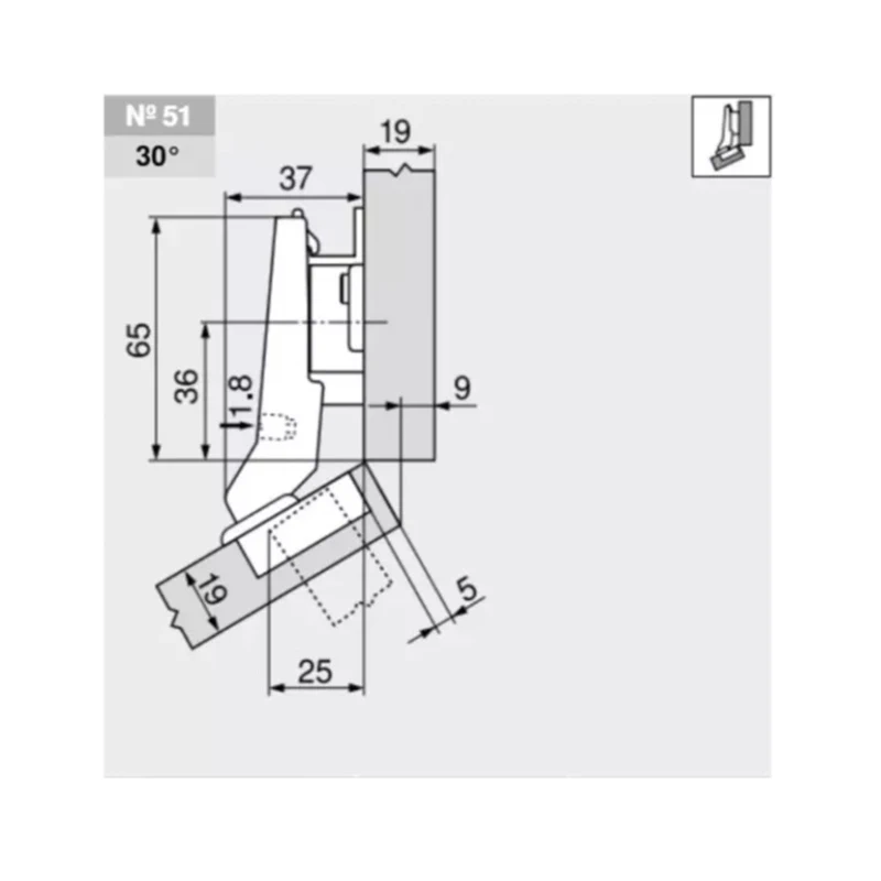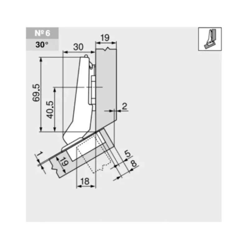 Завіса Blum кутова накладна +30⁰ кут відкривання 95⁰ 78A9556,T MB30+ V50 NI Нікель