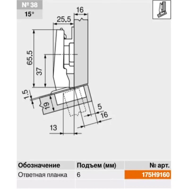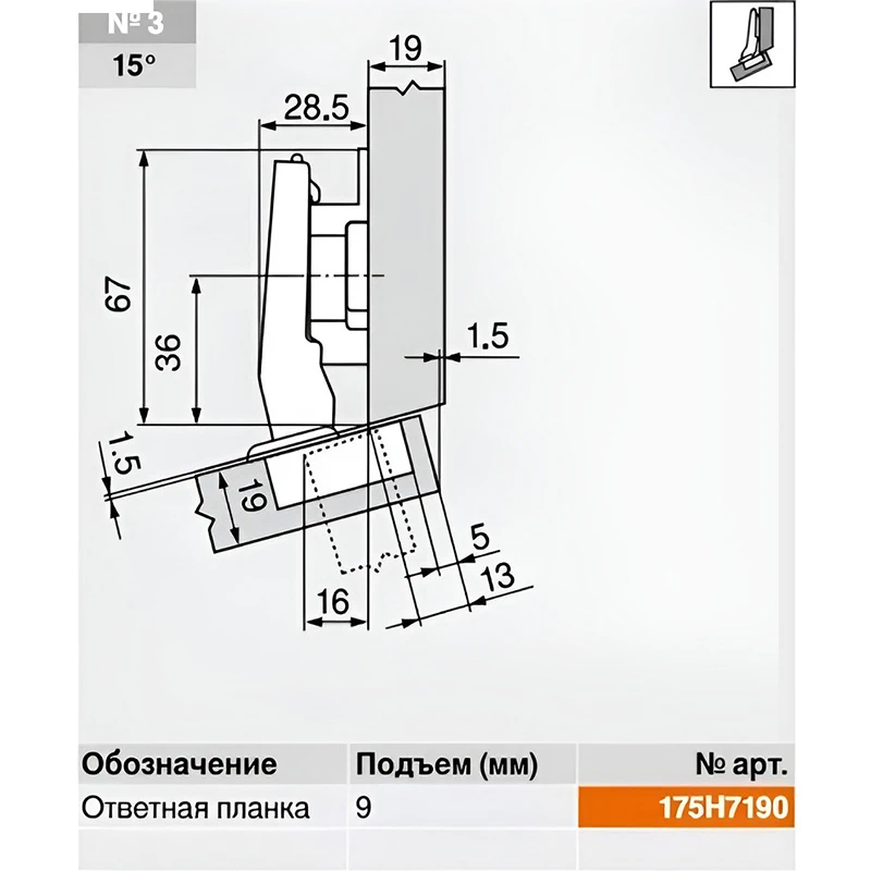 Завіса Blum кутова для ДСП +15⁰ з вбудованим Blumotion 79B9454 MB15+ V50 NI Нікель