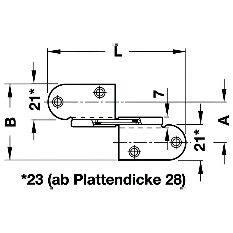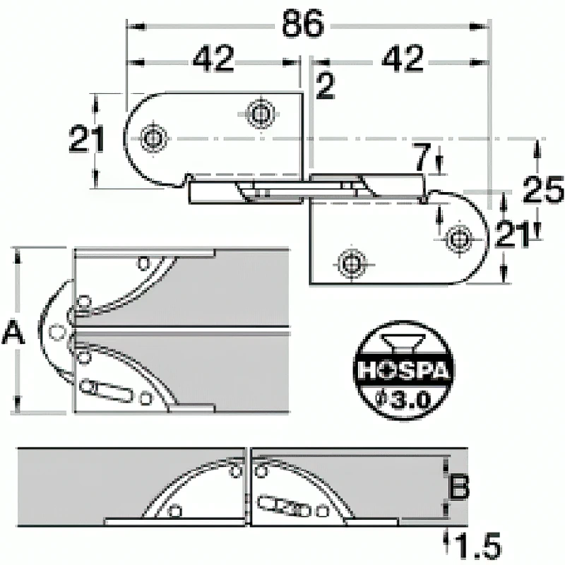 Складна петля для столу Häfele 341.30.544 — це високоякісна петля, призначена для встановлення в рівень, що забезпечує надійну фіксацію та плавне складання столів або відкидних поверхонь.