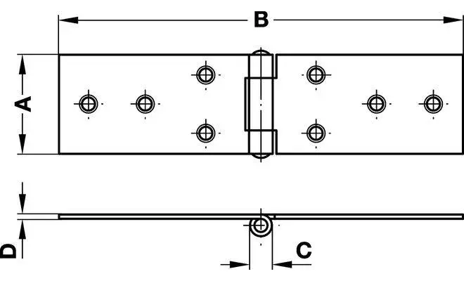 - Тип: пряма завіса з вальцьованим шарніром та заклепаним штифтом.