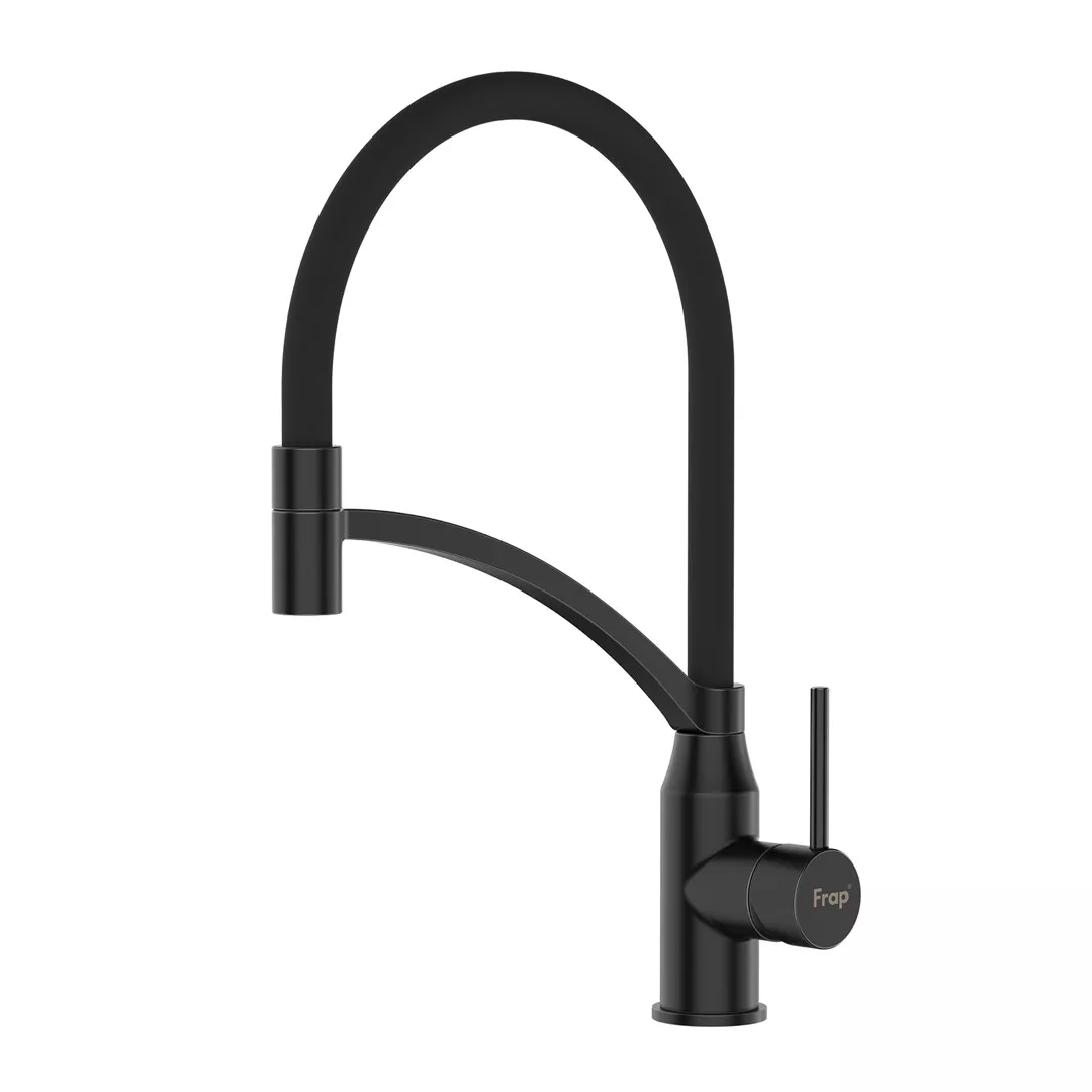 Змішувач для кухні Frap F4552-6 з гнучким виливом, чорний