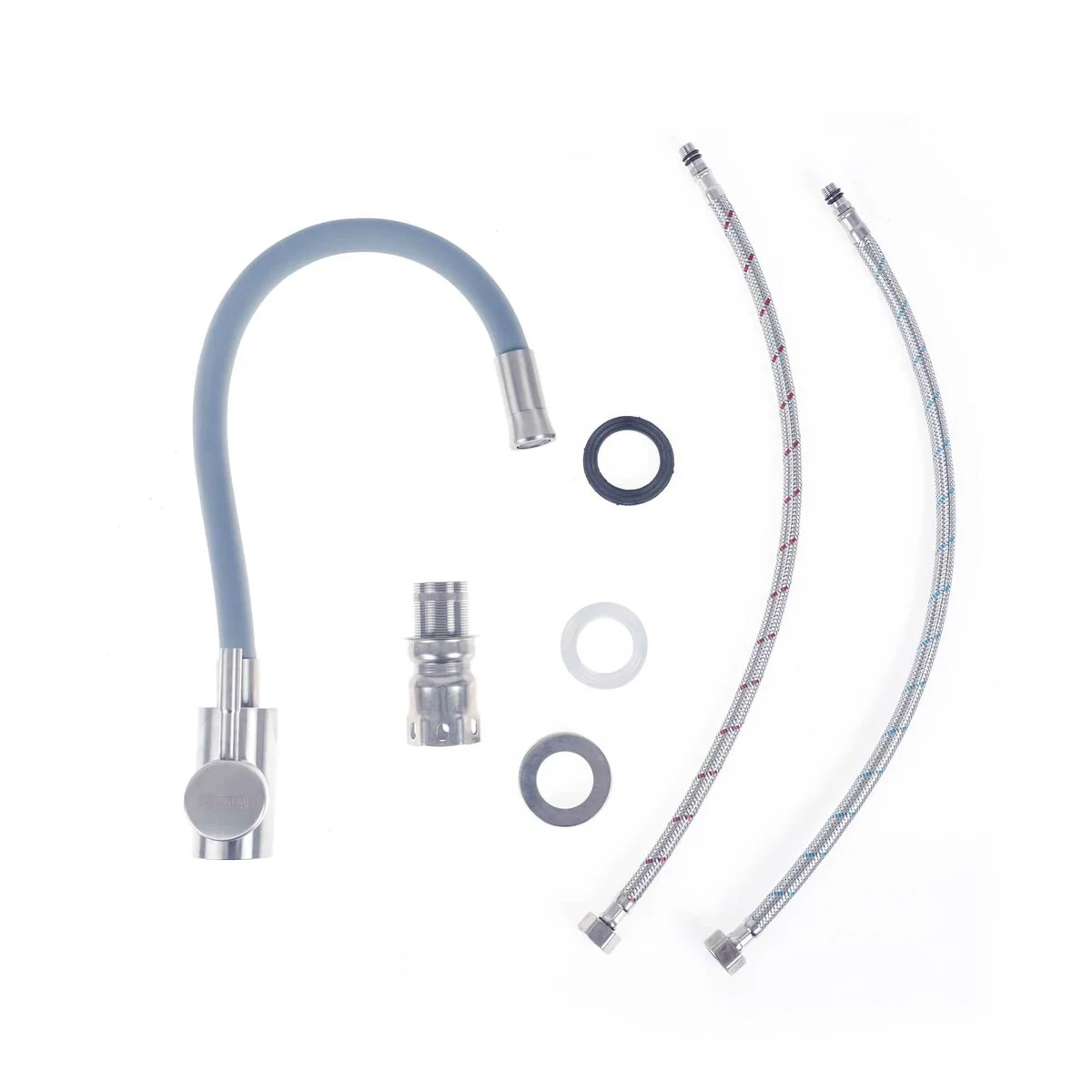 Гнучкий кухонний змішувач Valeso KT 92 — це поєднання практичності, сучасного дизайну та високої якості. Корпус виготовлений із нержавіючої сталі марки SUS 304, що забезпечує довготривалу службу та стійкість до корозії.