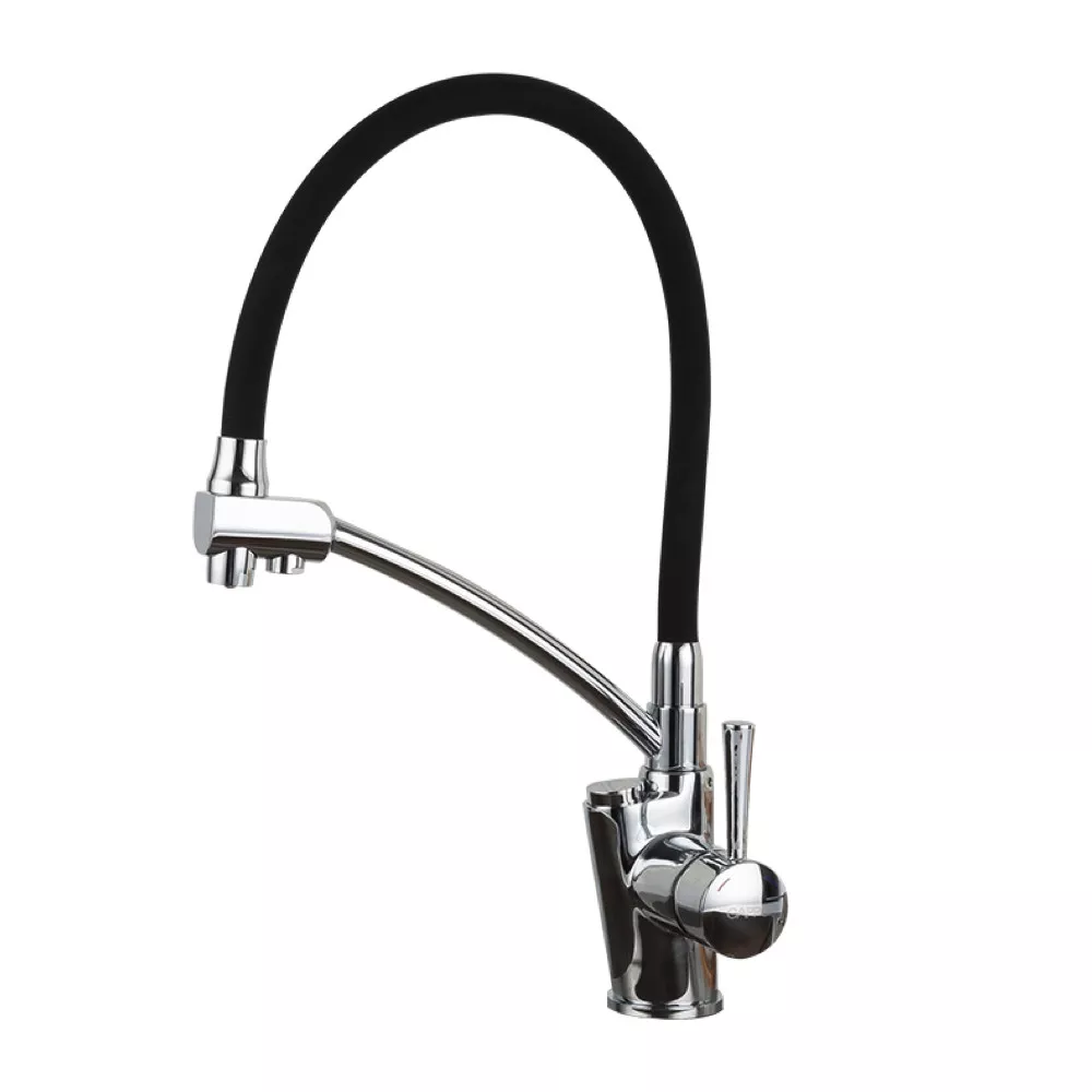 Змішувач для кухні на дві води GAPPO G4398-11 з гнучким виливом, чорний/хром