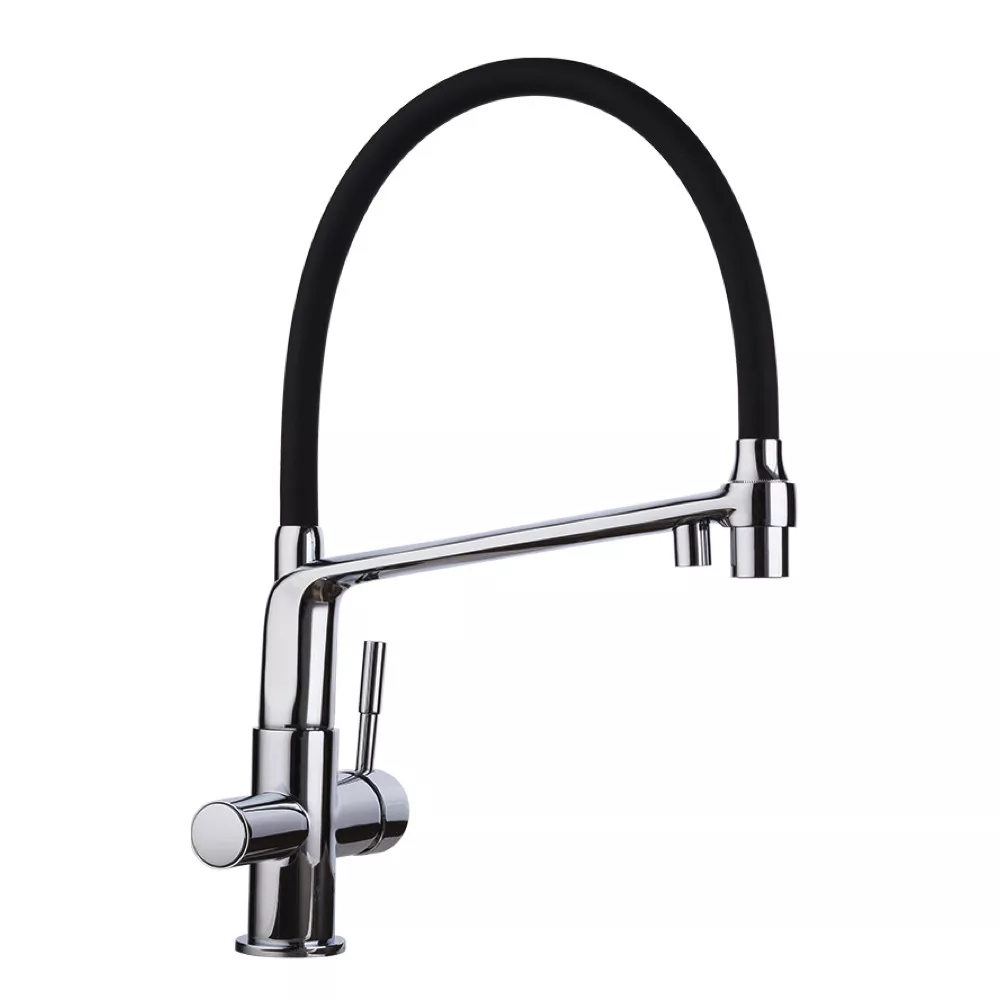 Змішувач для кухні на дві води GAPPO G4398-7 з гнучким виливом, чорний/хром