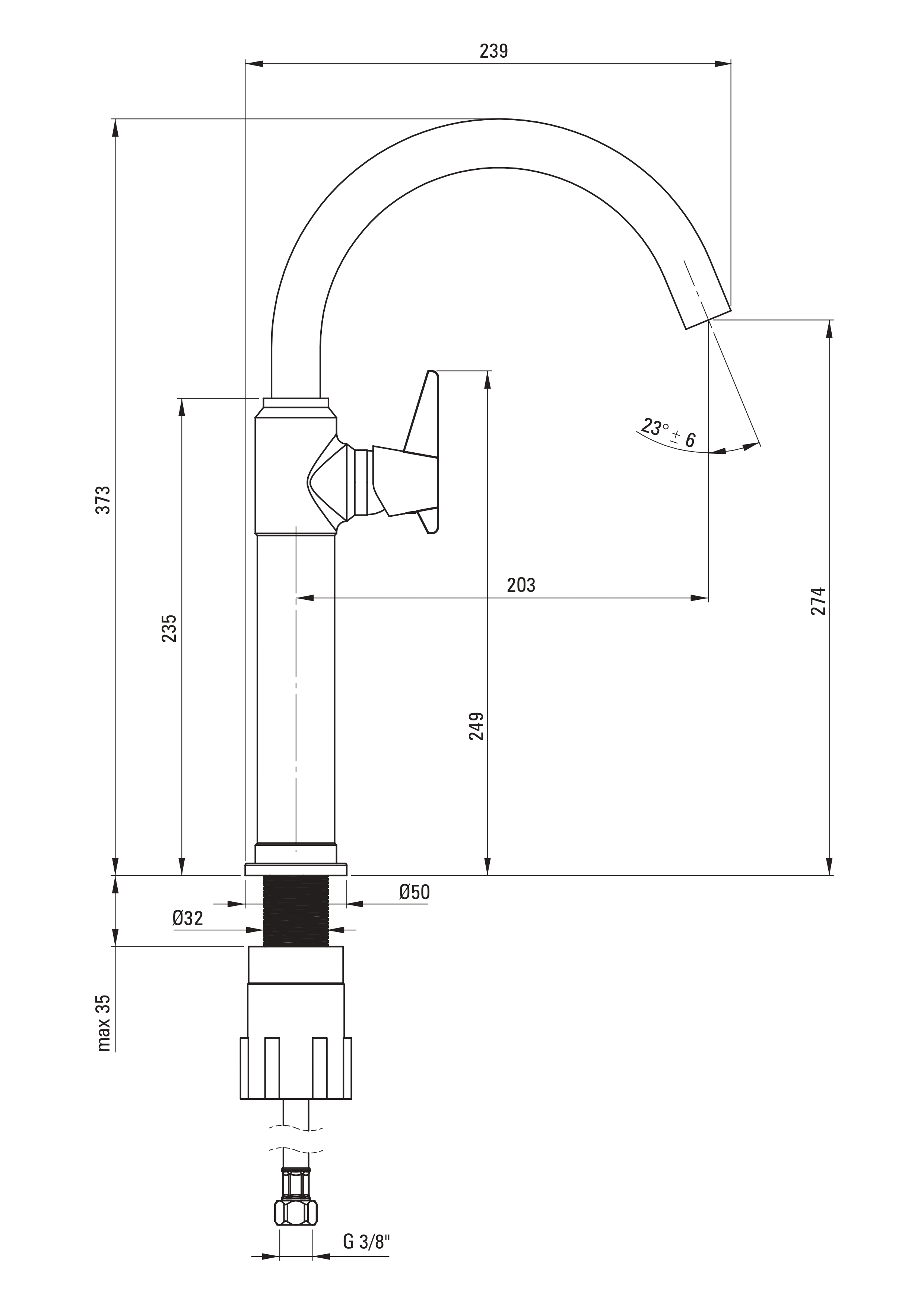 Змішувач для раковини Deante Temisto, довж. виливу - 203мм, поворотний, 1важіль, латунь