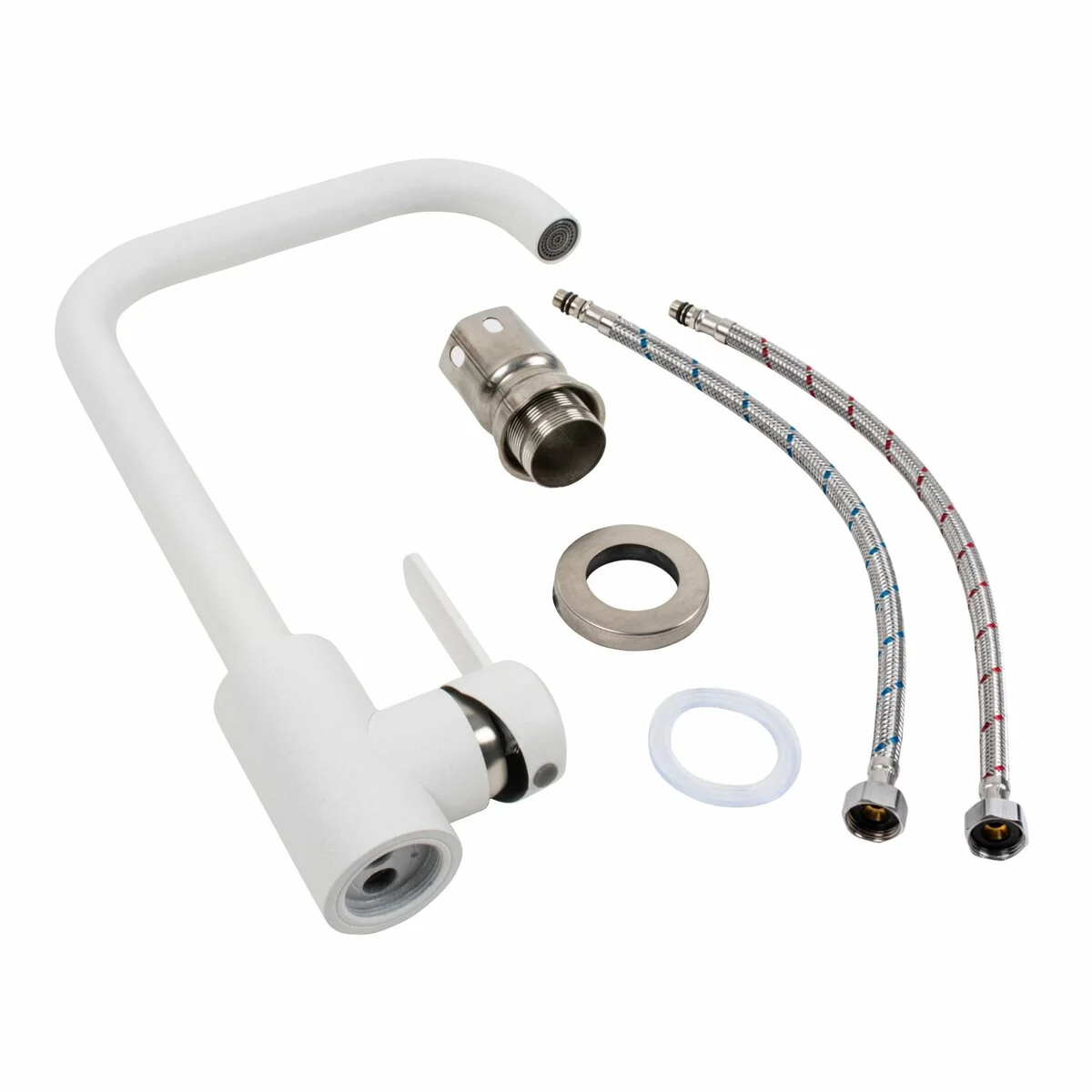 Змішувач кухонний Platinum KT 11 (3008B-FH) Білосніжний- це практичне та стильне обладнання для вашої кухні, яке поєднує в собі зручність, якість та елегантний дизайн. З цим змішувачем ви зможете ефективно та комфортно виконувати різноманітні завдання з водопостачання.
