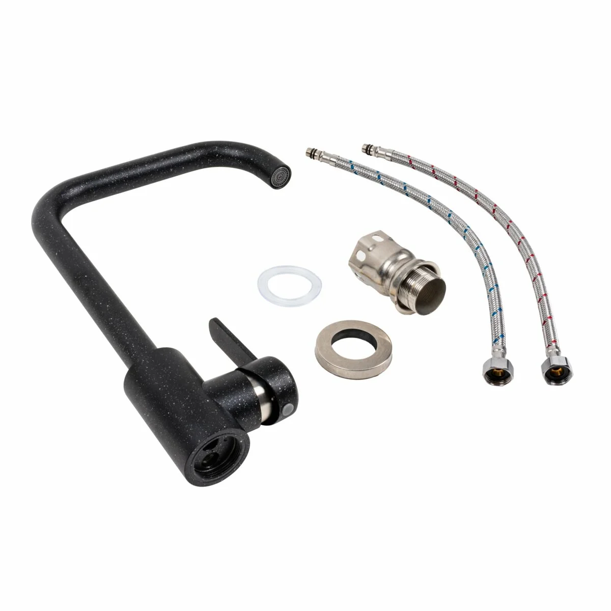 - Комплектація змішувач, кріплення, гнучка підводка