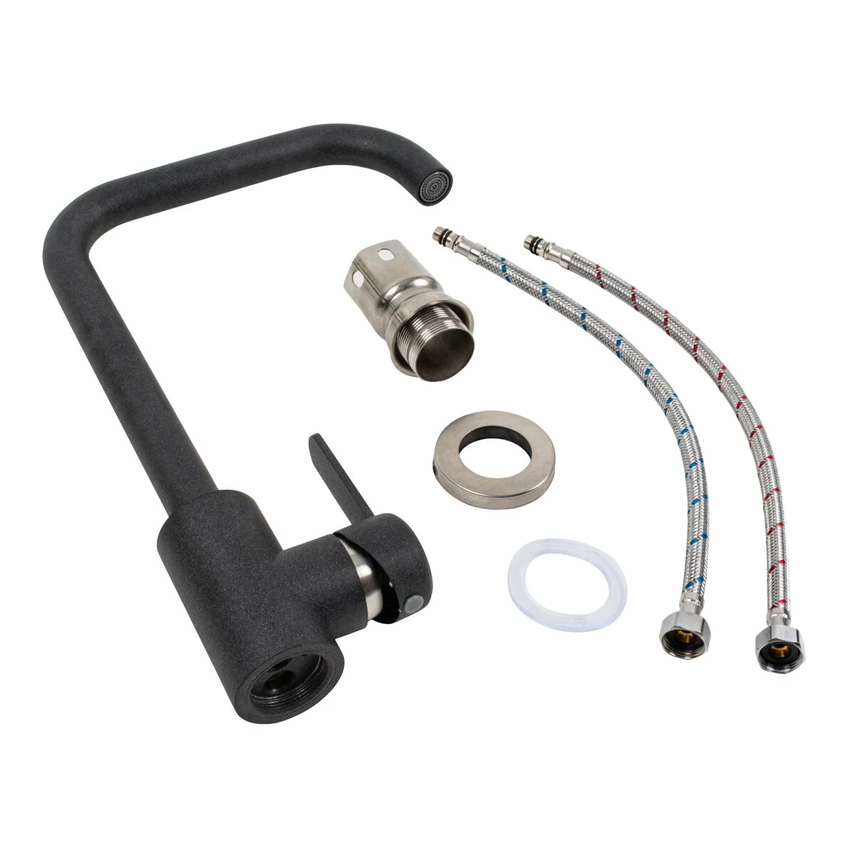 Змішувач кухонний Platinum KT 11 (3008B-FH) Карбон- це практичне та стильне обладнання для вашої кухні, яке поєднує в собі зручність, якість та елегантний дизайн. З цим змішувачем ви зможете ефективно та комфортно виконувати різноманітні завдання з водопостачання.