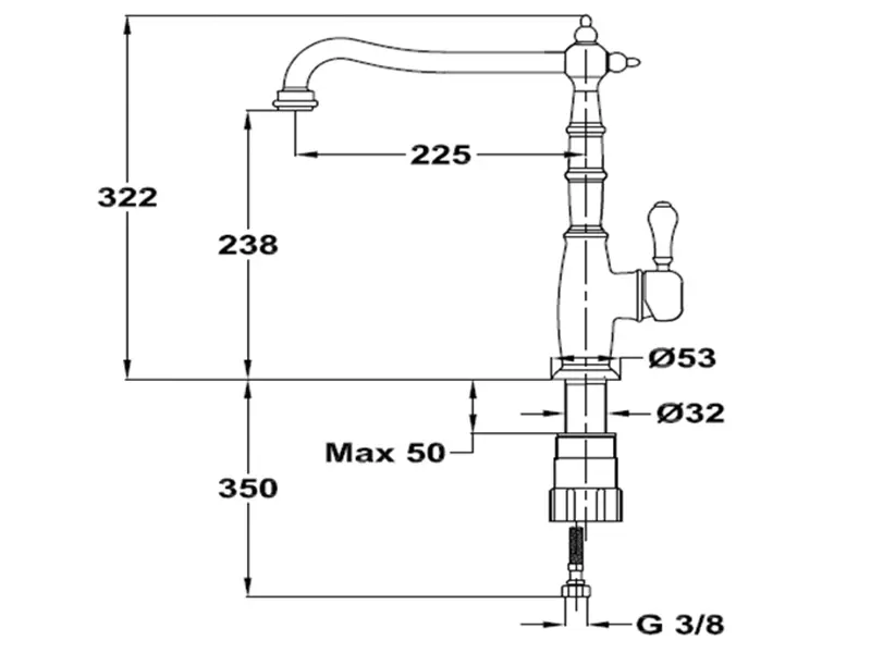 * Підключення 3/8" або 1/2" (гнучки сталевих шлангів)
