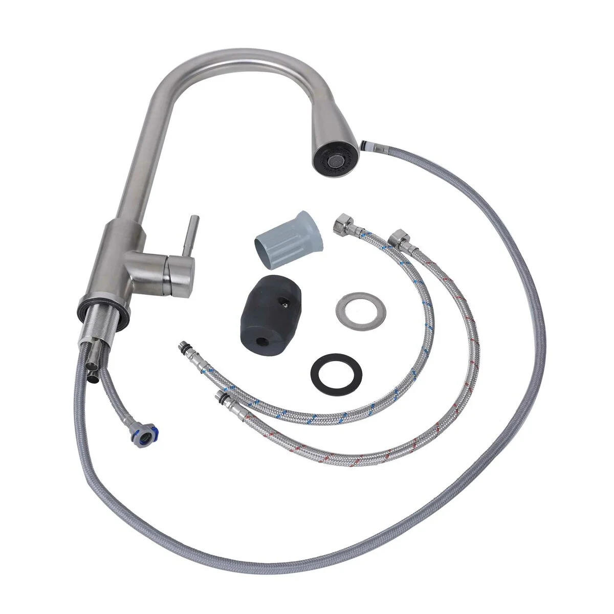 - Комплектація змішувач, кріплення, гнучка підводка, грузок