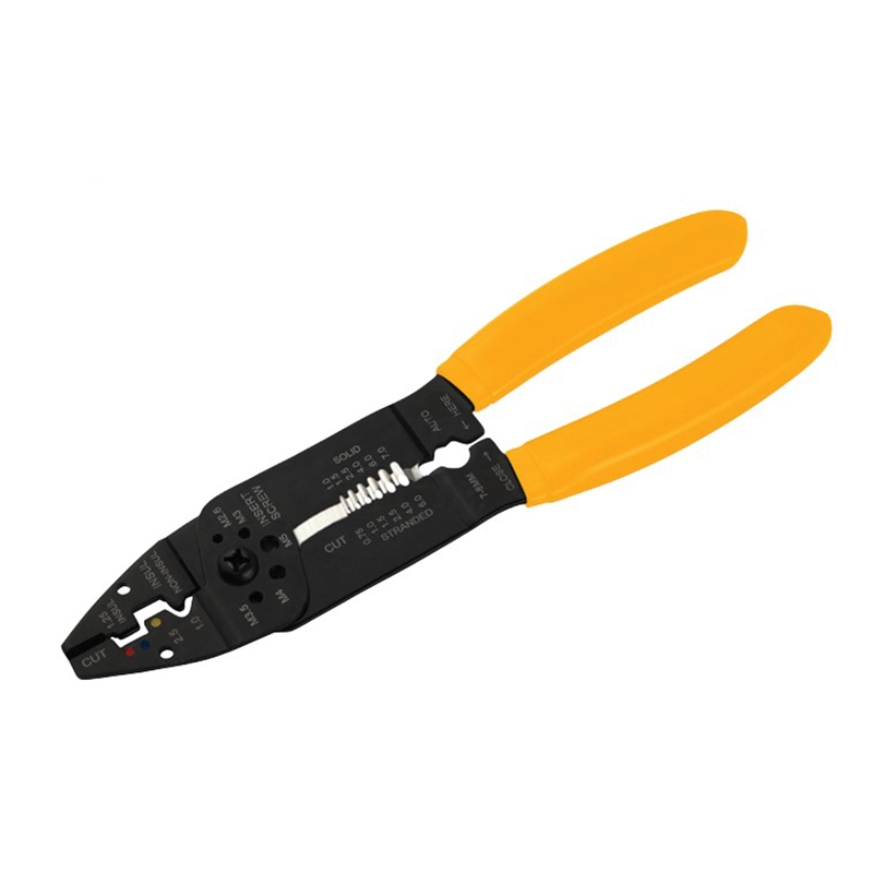 Мультифункціональний електромонтажний інструмент Tolsen Профі довжиною 215 мм призначений для зняття ізоляції, обрізання мідних штифтів і обтискання клем. Має діелектричні ручки, виконаний зі сталі Mn65 з чорним оксидним покриттям.