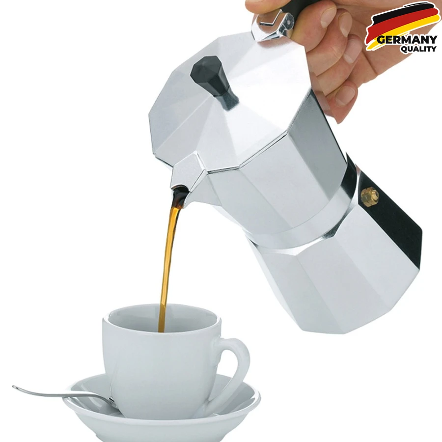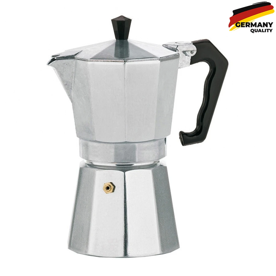 Гейзерна кавоварка Kela Bella виготовлена з алюмінію і розрахована на приготування 6-ти чашок еспрессо.