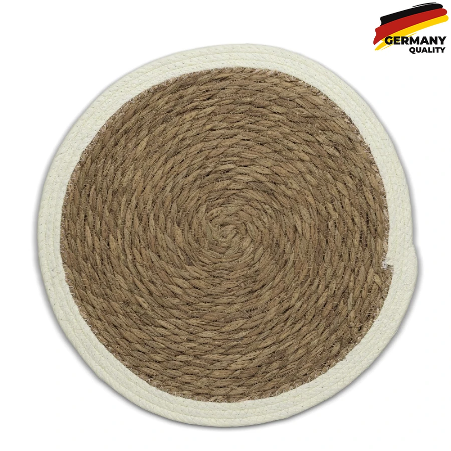 Цей красивий килимок KELA Trava з краєм кремового кольору привертає увагу до вашого столу. Він виготовлений з 100% натурального матеріалу морської трави, яка вважається міцним і довговічним природним матеріалом.