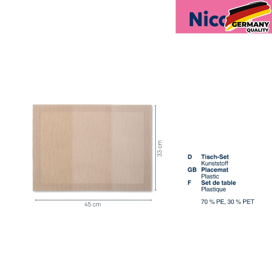 Різноманітність забарвлень моделі Nica дозволяє розмістити килимок з будь-яким сервіруванням, доповнюючи загальну картину і не вибиваючись з кольорової гами.