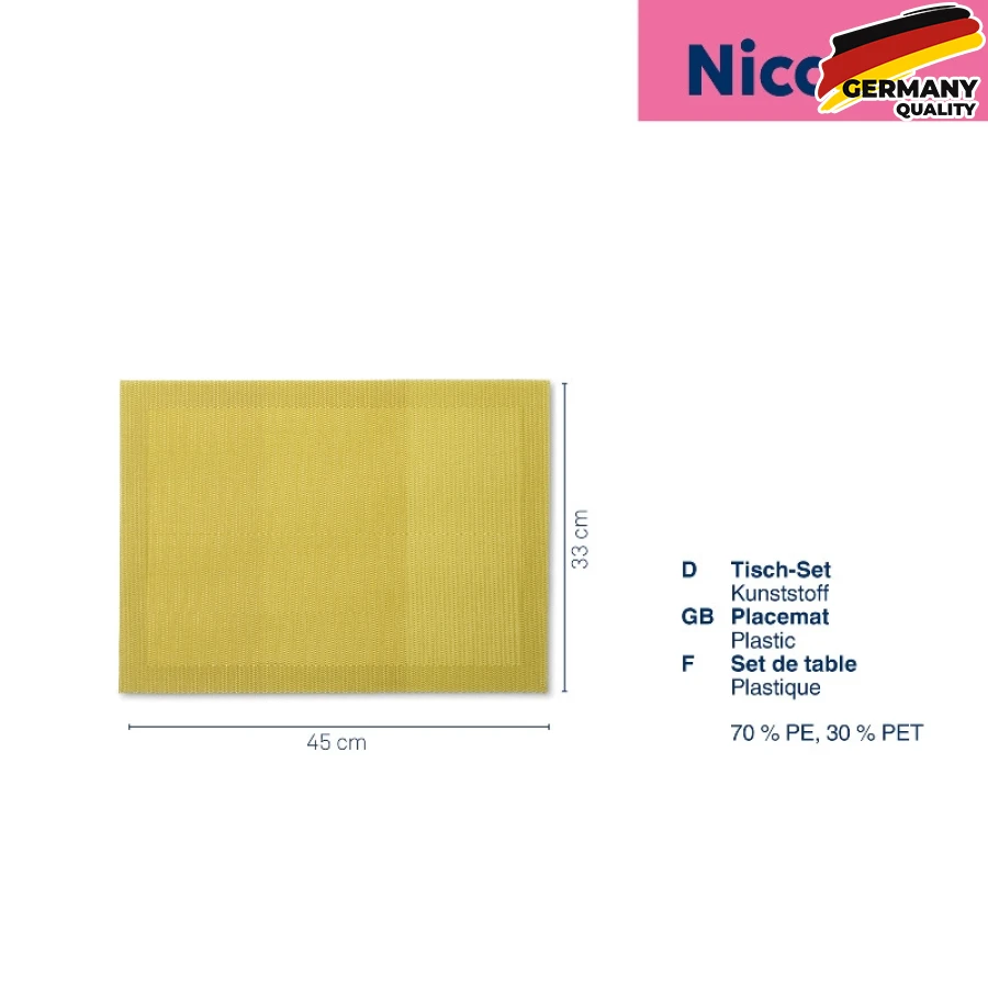Різноманітність забарвлень моделі Nica дозволяє розмістити килимок з будь-яким сервіруванням, доповнюючи загальну картину і не вибиваючись з кольорової гами.