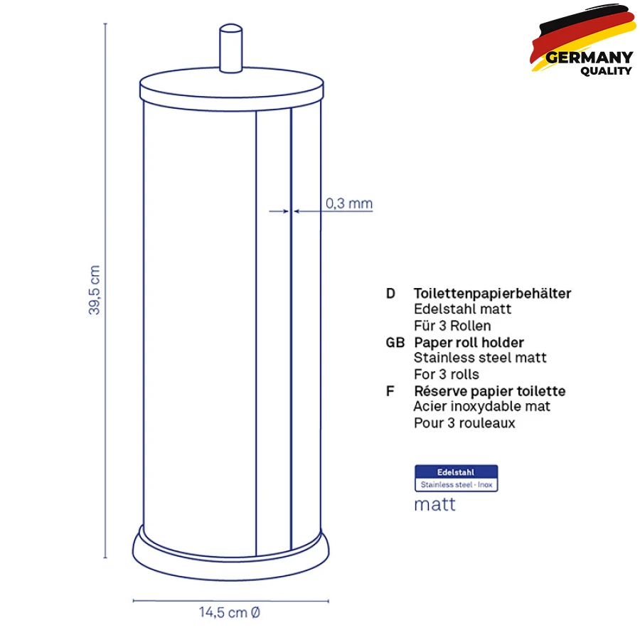 У такому контейнері можна зберігати до трьох рулонів туалетного паперу. Завдяки боковому відкриванню контейнера кожен рулон можна легко дістати чи вкласти новий.