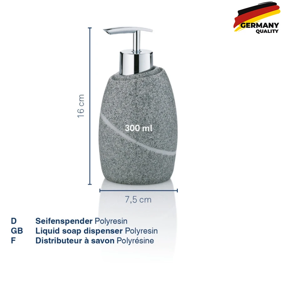 Дозатор для мила Talus, сірий, на 300 мл мила має такі розміри: висота 16 см, Ø 7,5 см.
