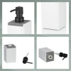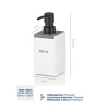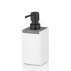 Перше, що впадає у вічі в цьому дозаторі мила, — це контраст. Біла матова поверхня у поєднанні з чорною туфлею та красивим елементом під світло-сірий камінь. Саме це відрізняє цю модель від інших серій. Дозатор для мила Cube, матовий білий, з поліестеру, зі знімною пластиковою головкою чорного кольору. Об'єм: 300 мл. Розміри: 7 х 7 х 17,5 см.