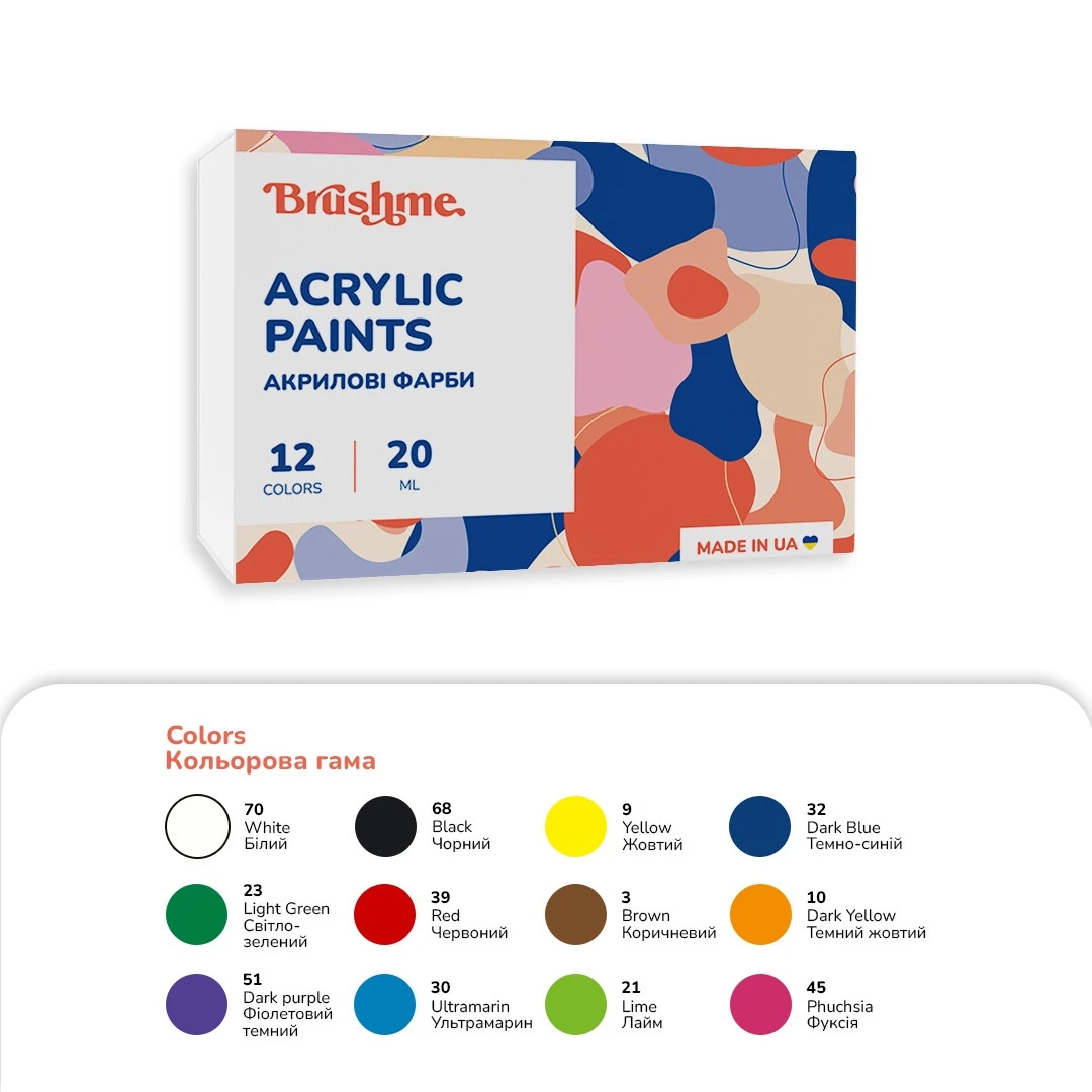 Акриловая краска глянцевая, 20мл, Набор 12 цветов