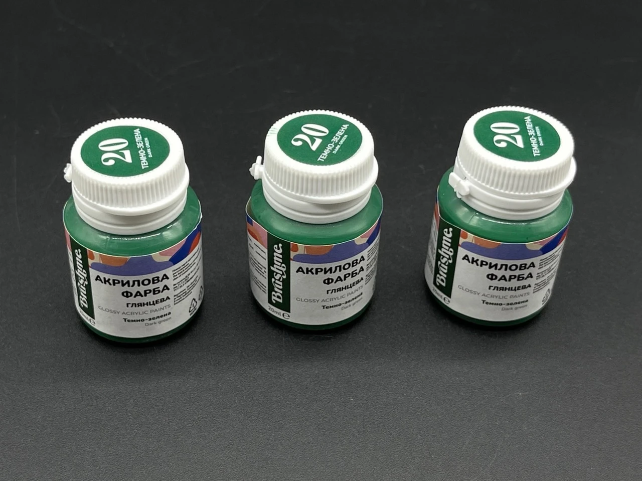 Акриловая краска глянцевая, влагостойкая, 20мл, Цвет «темно-зеленый»