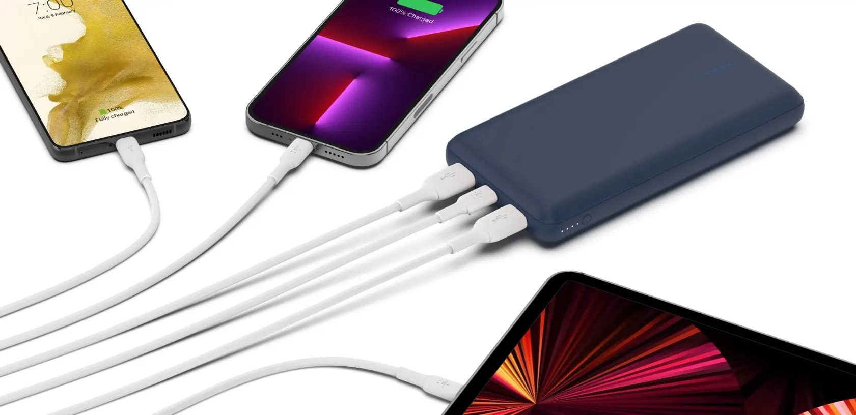 Заряджайте три пристрої одночасно. Два порти USB і один порт USB-C забезпечують живлення всі необхідні пристроїв та забезпечують до 80 годин автономної роботи смартфону. Переглядайте фільми, здійснюйте марафонські дзвінки FaceTime та продовжуйте роботу своїх навігаційних програм до пункту призначення. Кабель USB-A, що у комплекті, USB-C дозволяє почати зарядку прямо з коробки і підзарядити зовнішній акумулятор, коли це необхідно.
