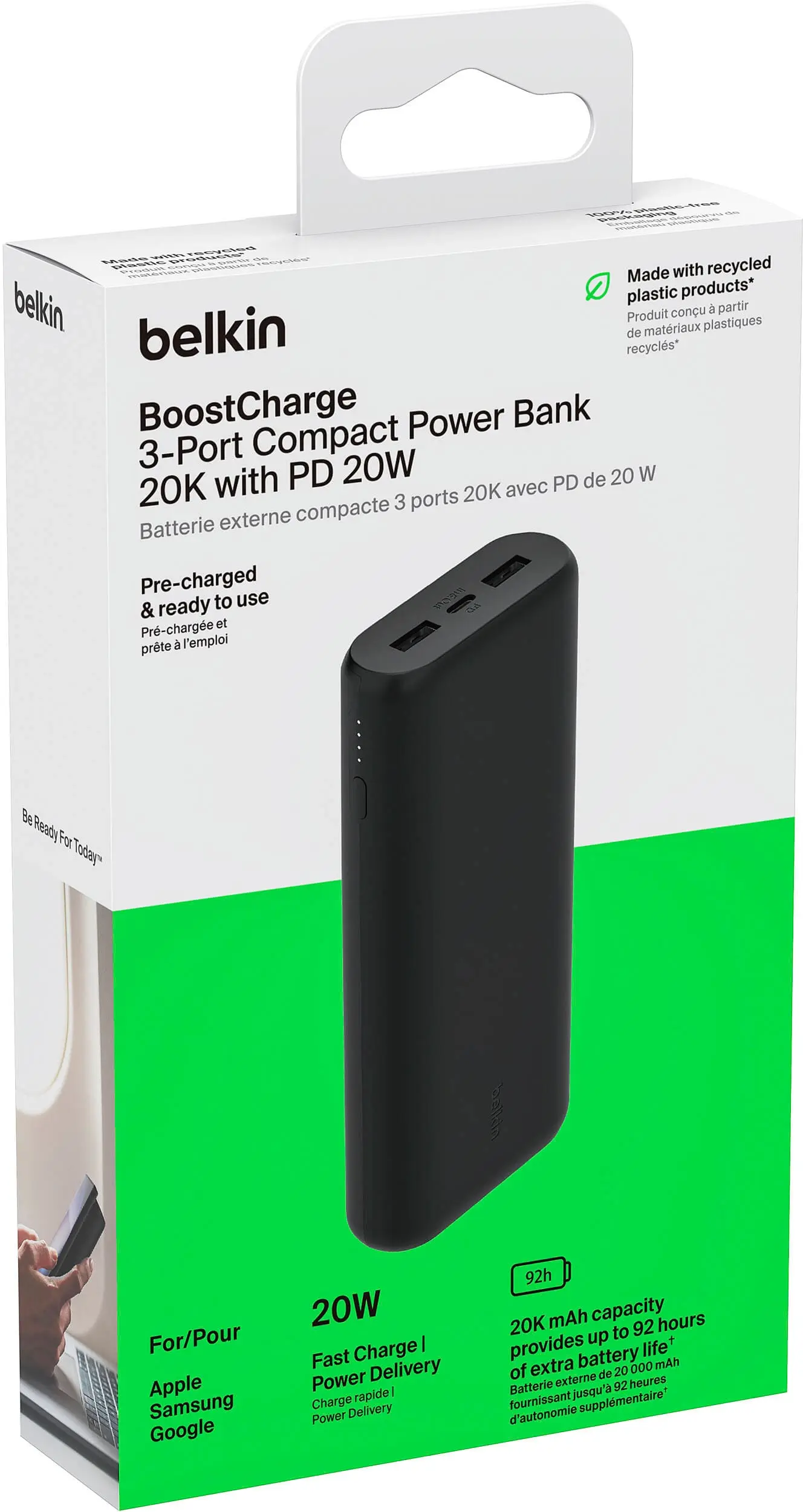 Акумулятор портативний літій-іонний Power Bank Belkin 20000мА·год, 20Вт, 2хUSB-A/USB-C, чорний
