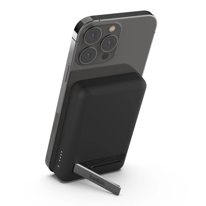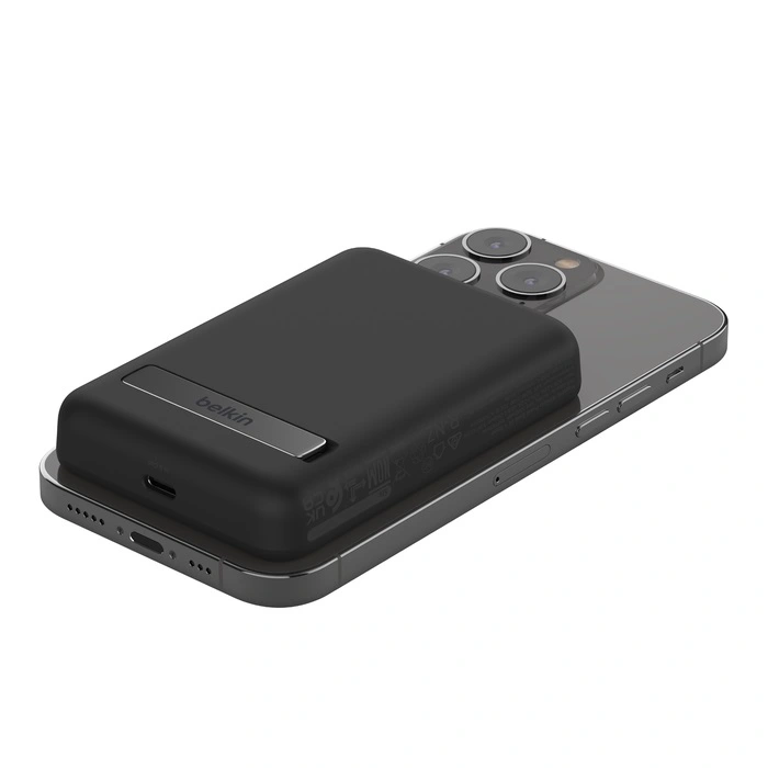 Зовнішній акумулятор для бездротової зарядки, ємністю 5000 мАг, сумісний із MagSafe, який не блокує камеру iPhone і дозволяє використовувати телефон під час заряджання. Маленький, тонкий, він ідеально підходить для швидкого збільшення ємності батареї в дорозі, подорожі або як резервне джерело живлення. Наскрізна зарядка дозволяє користувачам заряджати пристрій при одночасній підзарядці блоку живлення, а світлодіодний індикатор повідомляє їм, коли він потребує підзарядки. Поставляється з металевою підставкою, що розкладається, для зручного використання пристрою без допомоги рук під час зарядки.