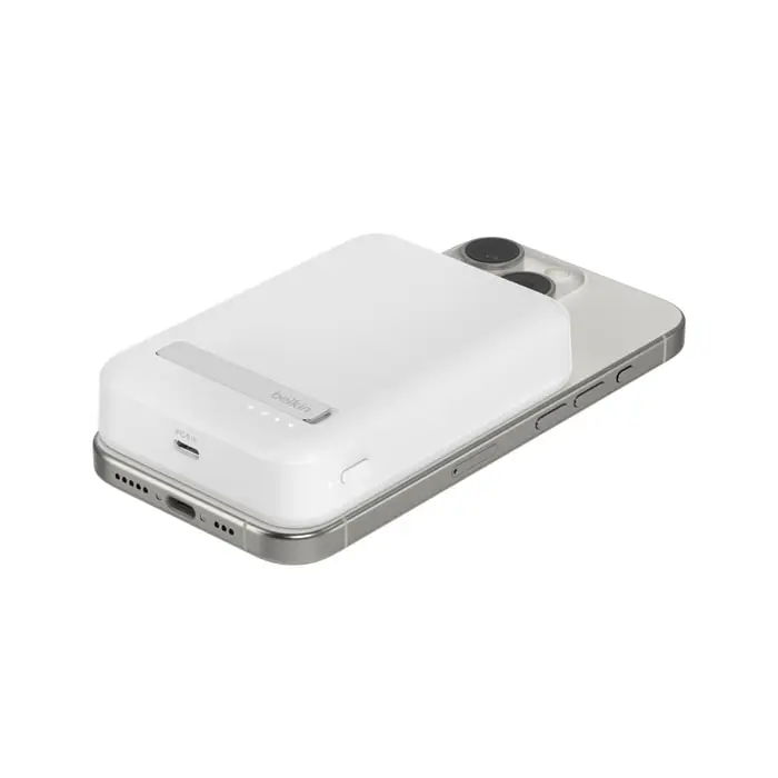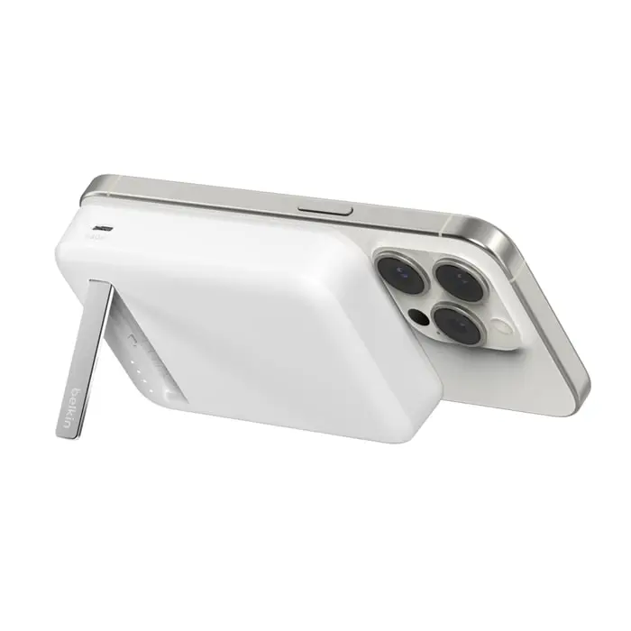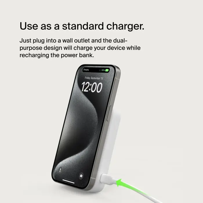 Заряджайте iPhone та інші смартфони швидко та безпечно за допомогою цього попередньо зарядженого, готового до використання MagSafe павербанка. Пристрої з підтримкою Qi2 та MagSafe матимуть легке та безперешкодне заряджання до 15 Вт. Функція підставки дозволяє насолоджуватися переглядом відео та стрімінгом, поки пристрій заряджається.