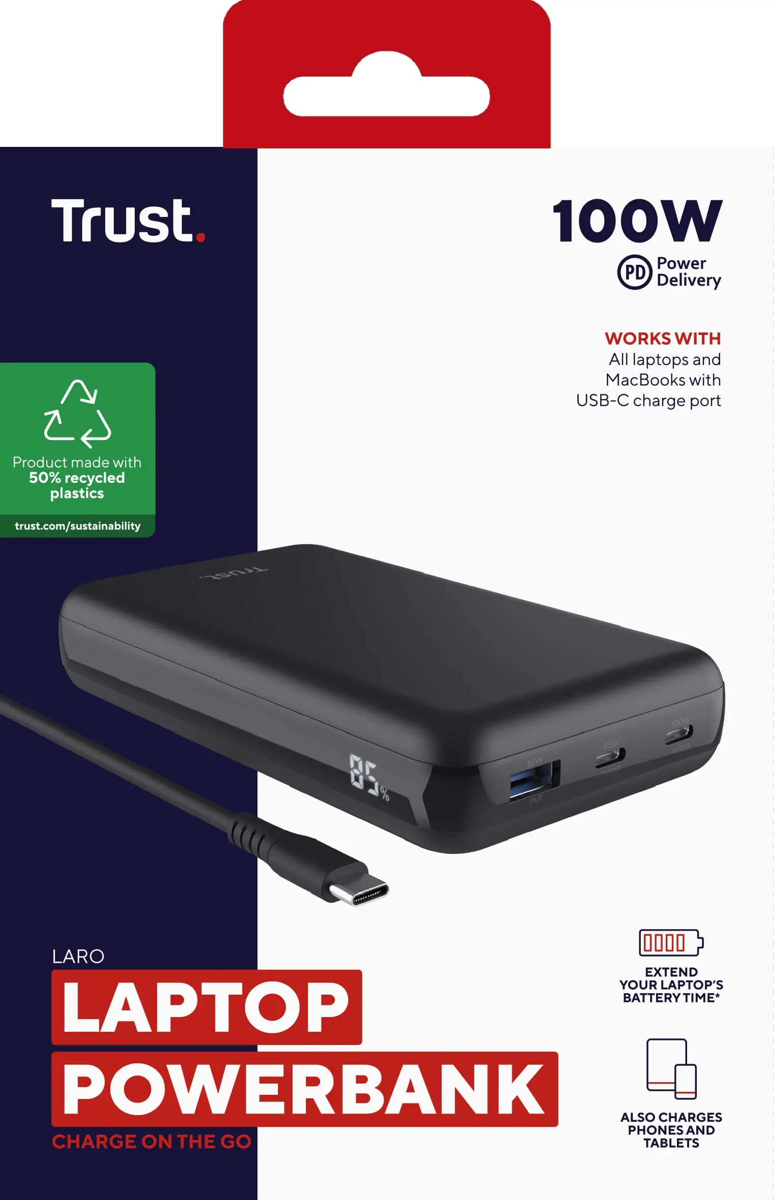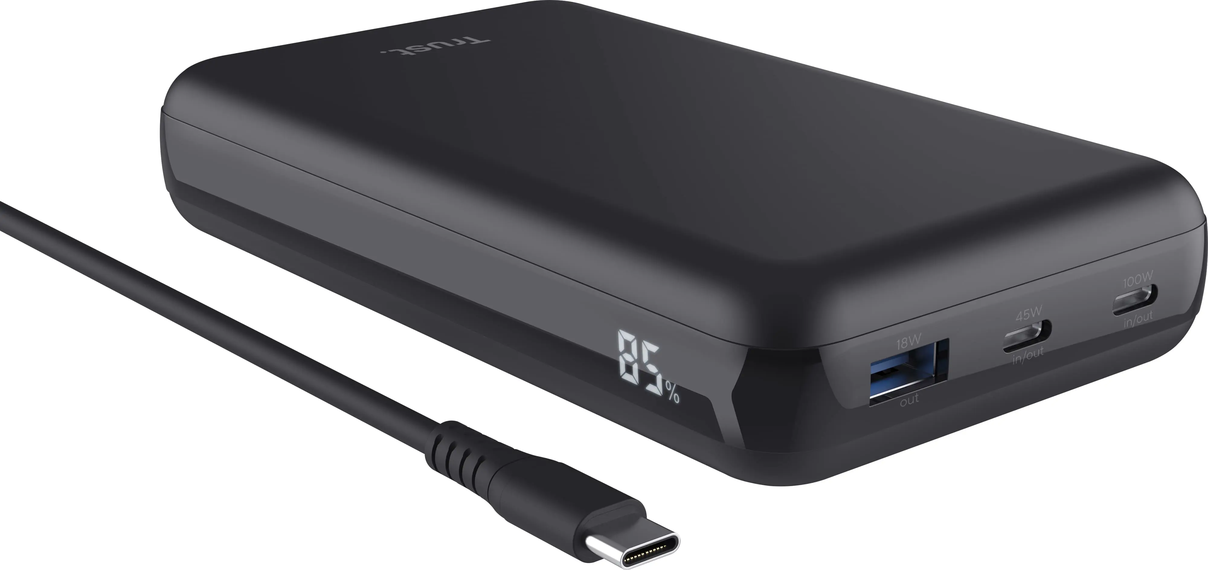 Акумулятор портативний літій-іонний power bank Trust Laro, 20000 мА·год, USB-A/2хUSB-C, 100w, чорний