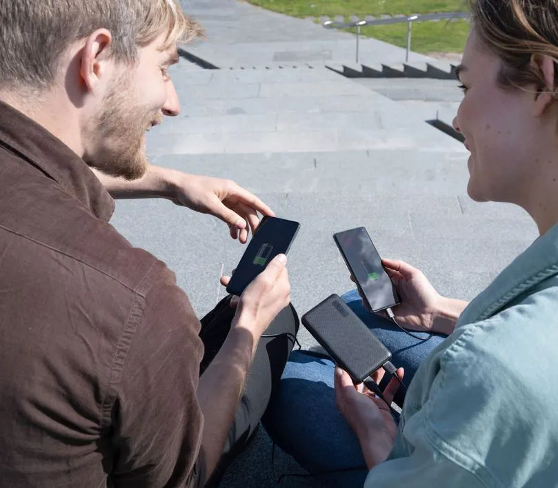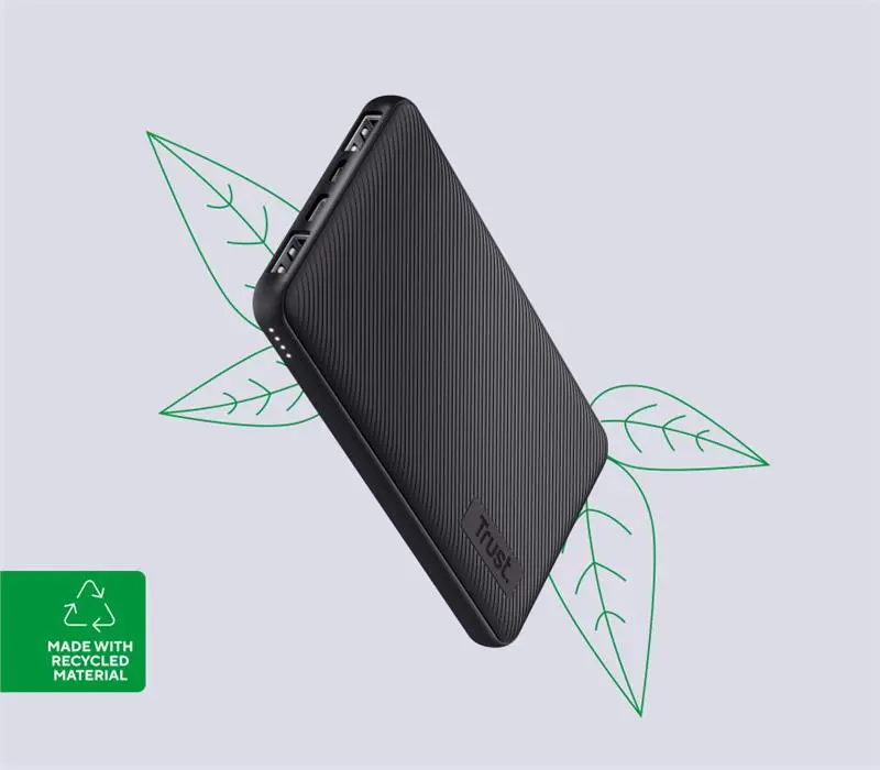Надтонка та легка модель поміститься у будь-яку кишеню та будь-яку сумку. Екологічно чиста конструкція, виготовлена із перероблених матеріалів. Швидкий та розумний: автоматично видає максимальну потужність для швидкого заряджання пристроїв. Сумісний з будь-якими телефонами та планшетами, у тому числі Apple та Samsung. Залишайтеся на зв'язку: до 4 перезаряджень телефону. До 46 додаткових годин роботи акумулятора телефону або 12 - планшета.