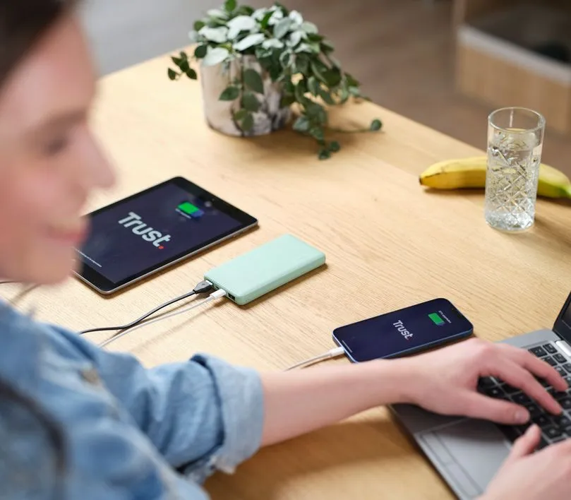 Акумулятор портативний літій-іонний power bank Trust Primo ECO, 10000мА·год, 2хUSB-A/USB-C, 15W, зел