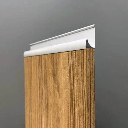32320-сатин – алюмінієвий профіль, з якого виготовляються доволі важливі деталі Вашого інтер’єру. Профіль має м'який металевий блиск з сріблястим відливом і це ідеальний матеріал для створення таких деталей як інтегрована ручка або для оздоблення фасадів без ручок