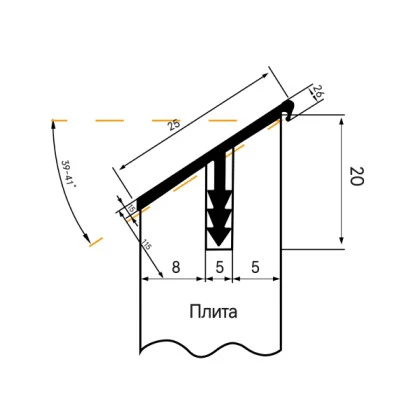 Алюмінієвий торцевий профіль під 40 градусів (врізний), 3000 мм, шт 3917-сатин (1675)