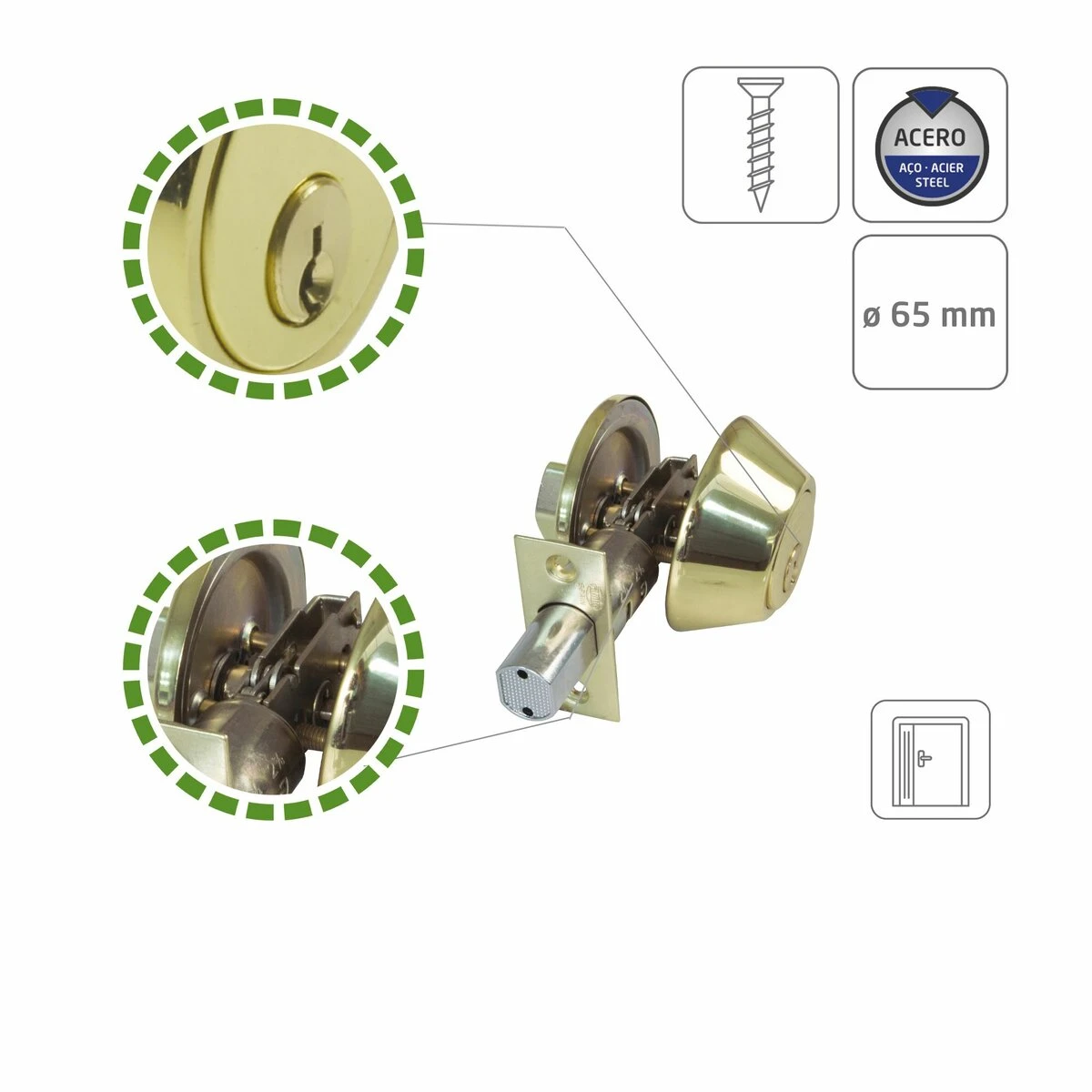 Совместим с латунными петлями, накладками и другой дверной фурнитурой классического дизайна. Универсальные размеры позволяют установить замок без дополнительной подгонки, сохраняя целостність конструкции и стиль помещения.