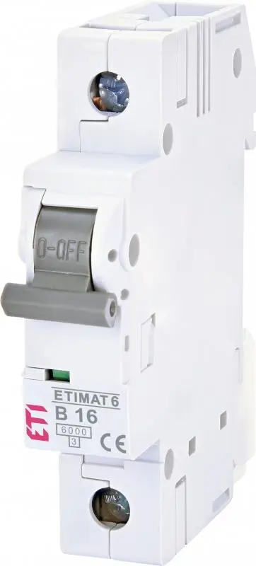 Авт. вимикач ETI ETIMAT 6 1p B 16А (6 kA). Автоматичні вимикачі серії ETIMAT 6 AC (6 kA) призначені для використання як в побутових електромережах та житлово-комунальному будівництві, так і в розподільних щитах, щитах управління тощо промислових споживачів невеликої потужності.