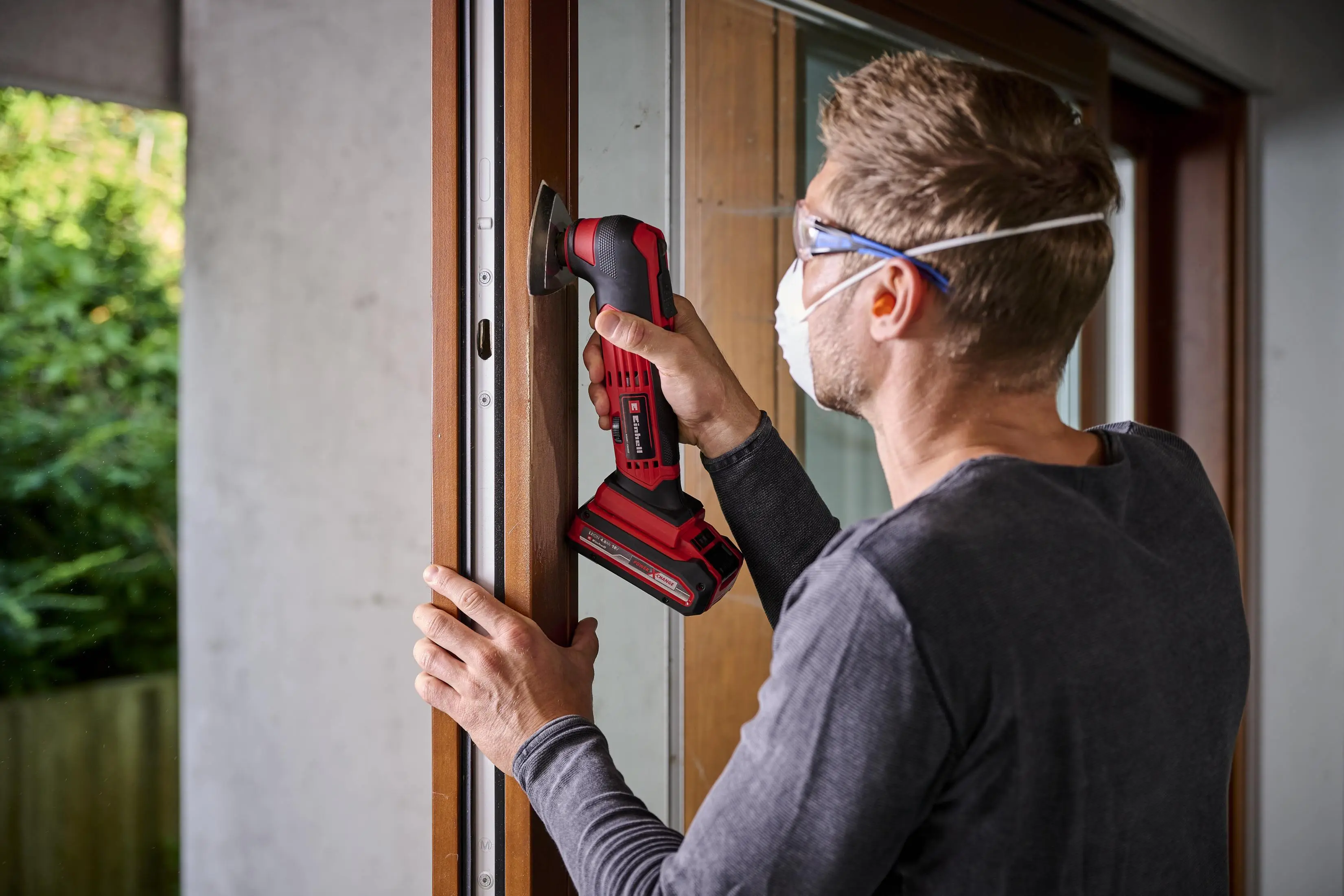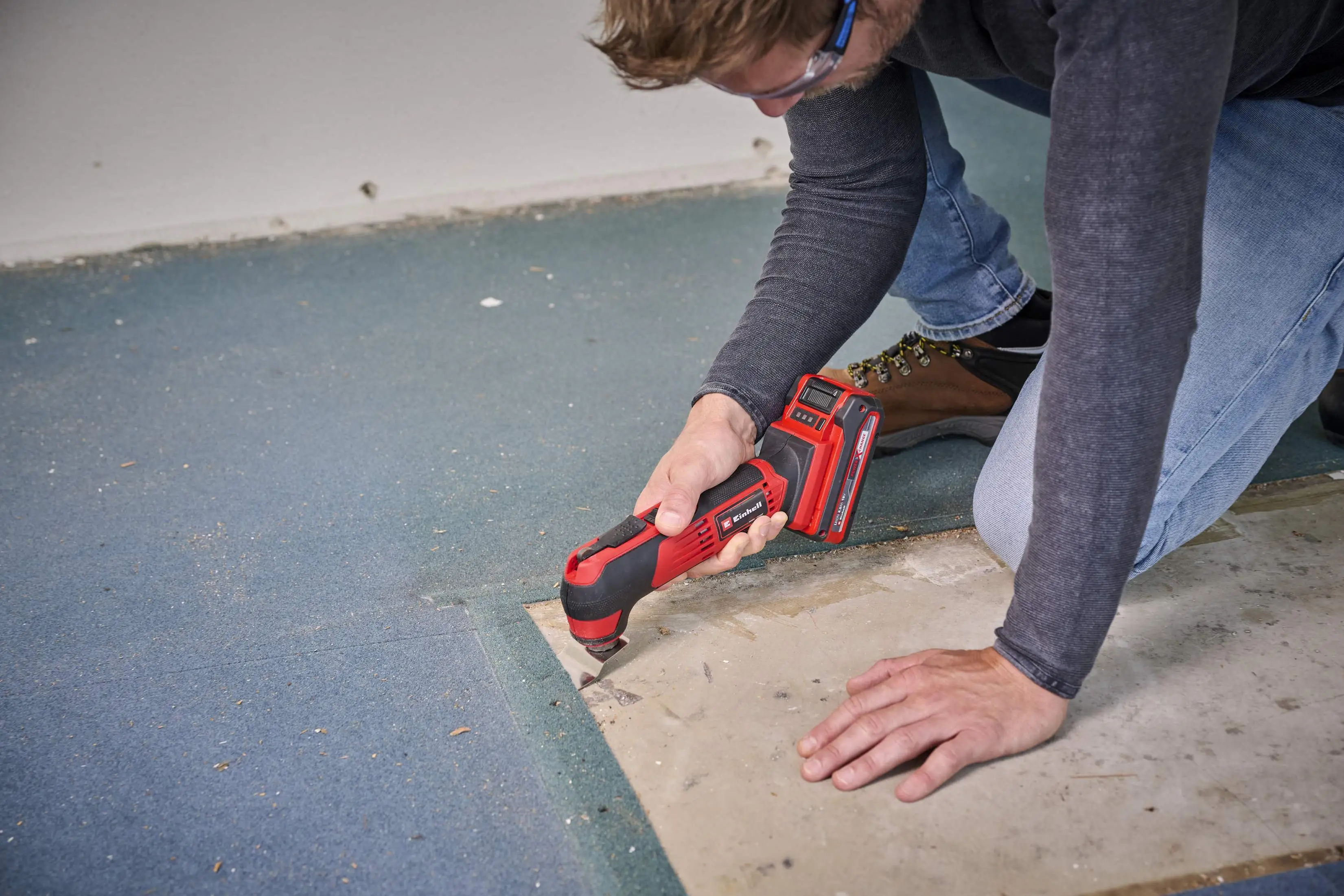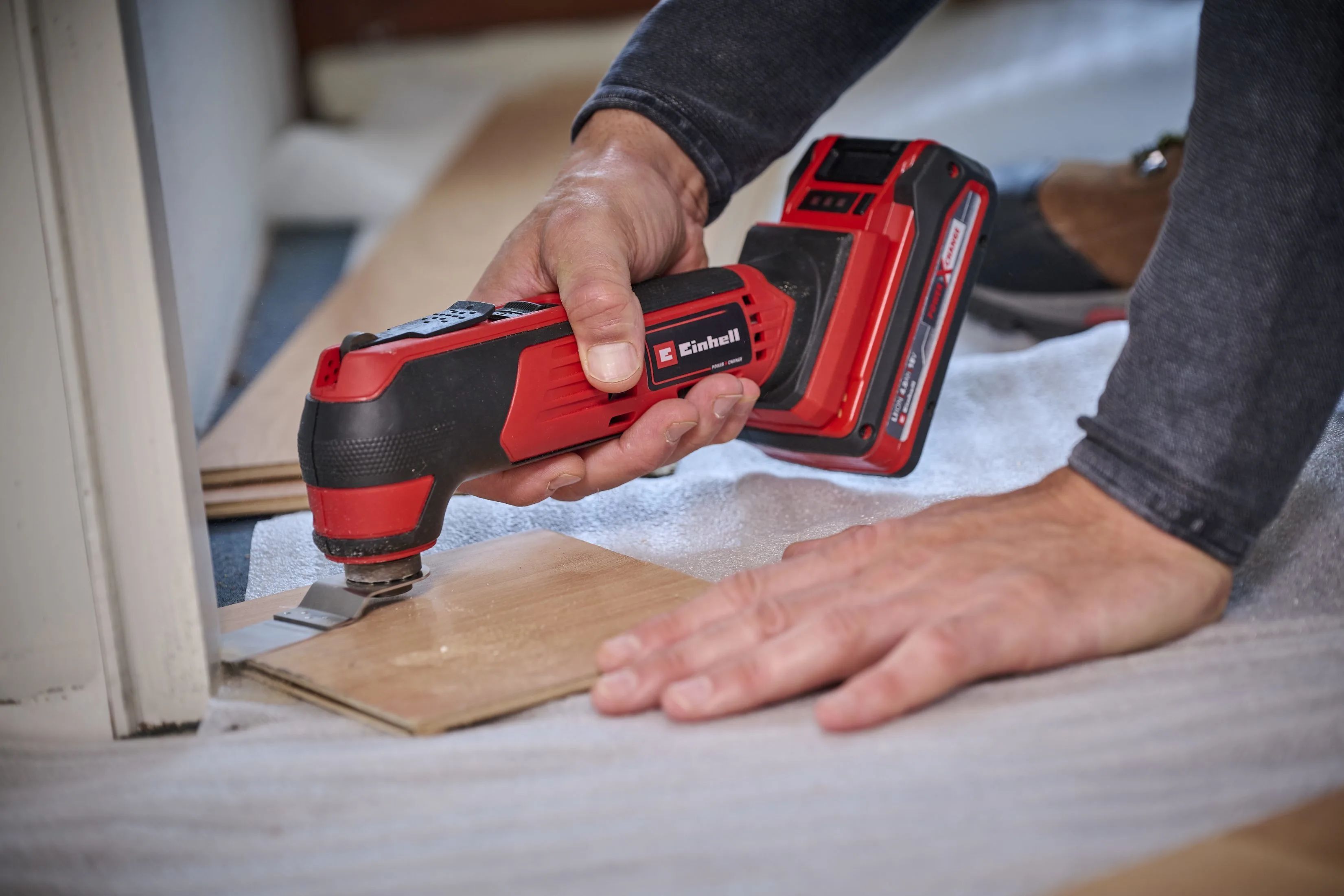 Einhell TE-MG 18/1 Li-Solo — акумуляторний багатофункціональний інструмент для шліфування, пиляння й шабрування. Оснащений швидкознімним замком, регулюванням швидкості та кутом коливання 3,2°. Ергономічний корпус з антивібраційним кріпленням. У комплекті: шліфпідошва, 9 аркушів наждачного паперу, скребок, 2 полотна. Акумулятор і зарядний пристрій не входять до комплекту.
