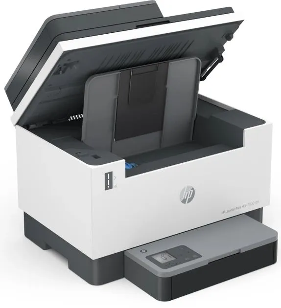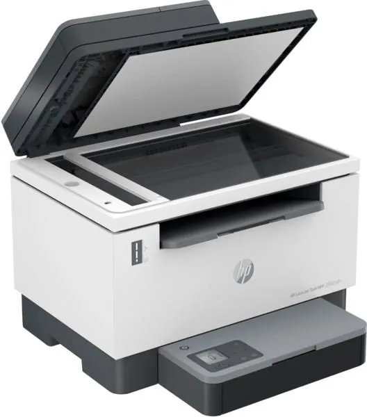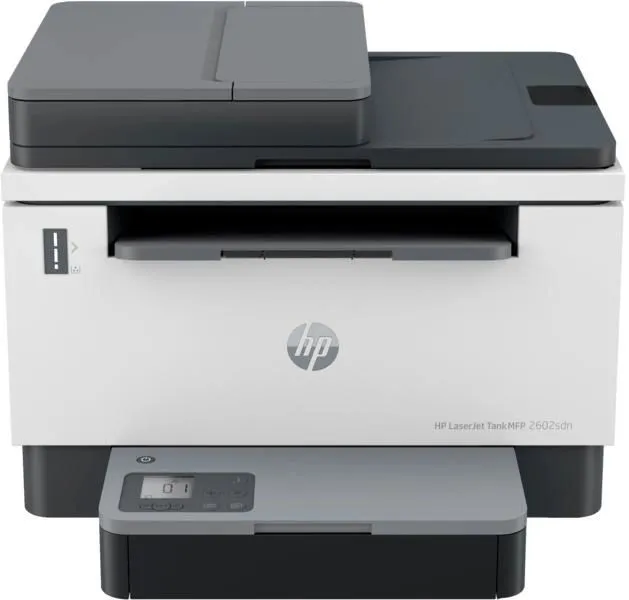 Відкрийте для себе готові до роботи можливості та економію завдяки багатофункціональному принтеру HP LaserJet Tank MFP 2602sdn All-in-One, попередньо заповненому оригінальним тонером HP на 5000 сторінок.  Отримайте наднизькі експлуатаційні витрати завдяки попередньо заправленому тонеру на 5000 сторінок та заощаджуйте за допомогою комплекту для заправки тонера HP. Скоротіть час простою та заправляйте тонер лише за 15 секунд завдяки опціям заправки тонера HP із надвисоким ресурсом.