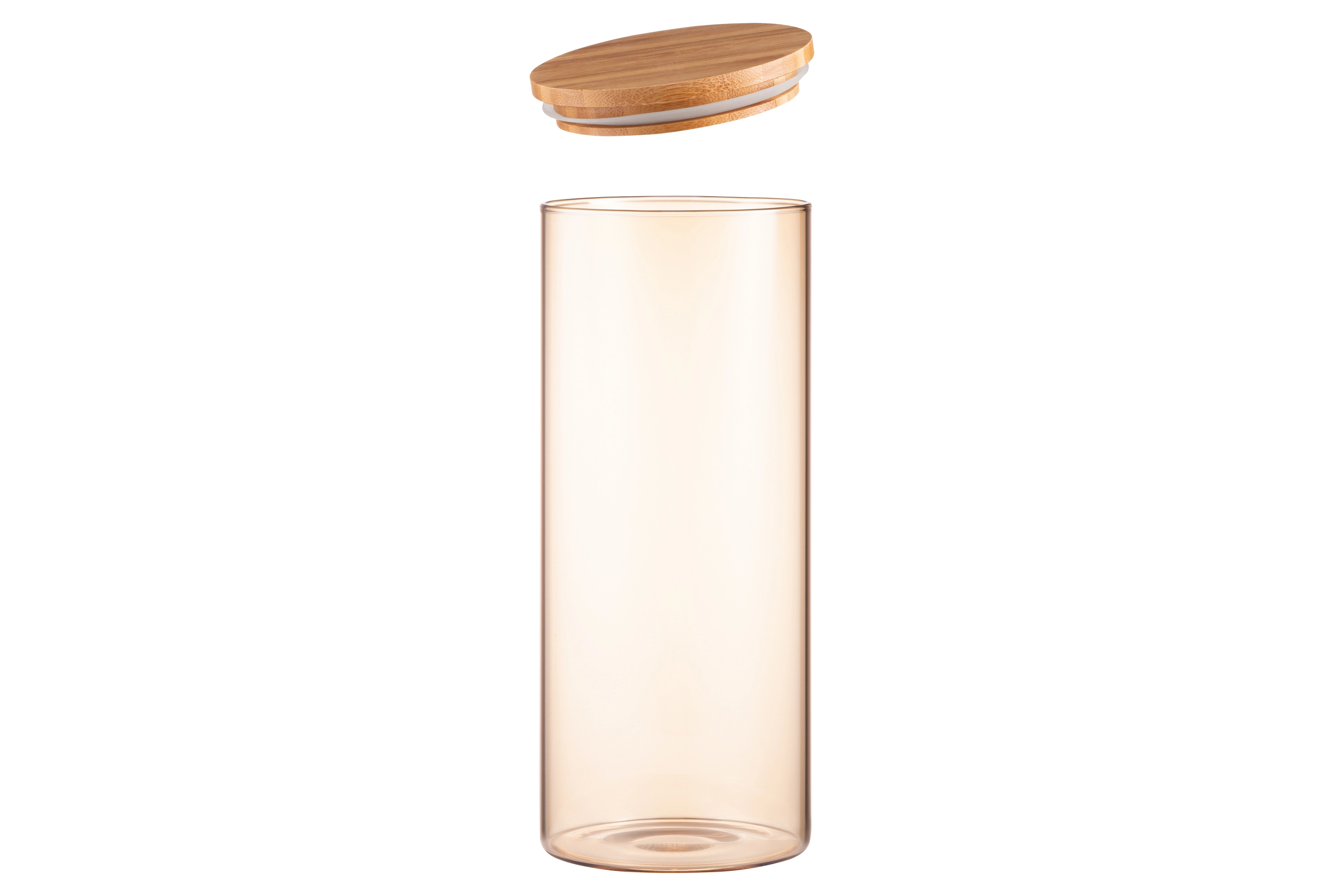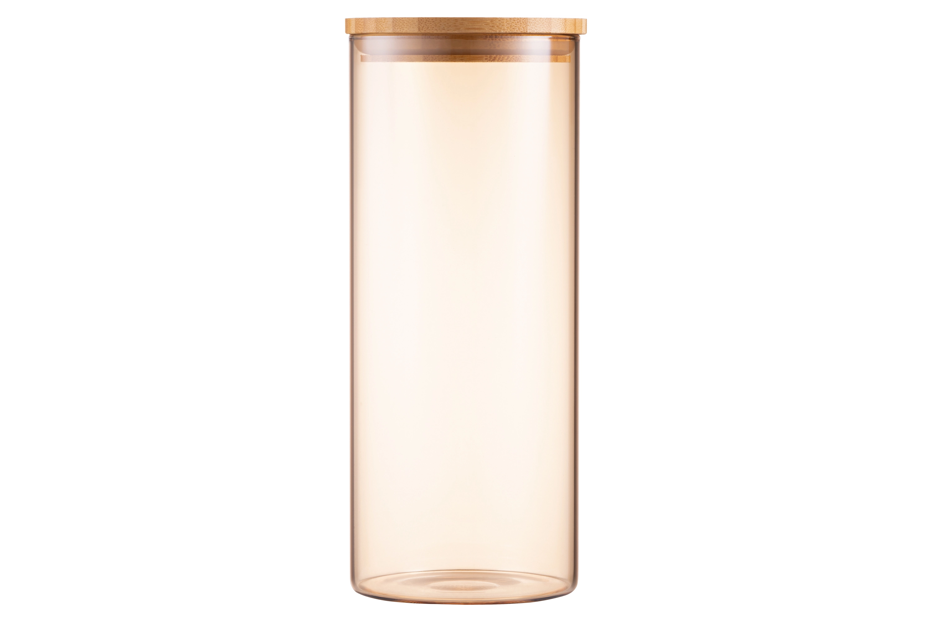 Якщо потрібно навести лад на кухні, у пригоді стане банка ARDESTO Golden Moon. Ємність заввишки 22 см й об’ємом 1 літр має круглу форму та виготовлена з боросилікатного скла, що має елегантний золотавий відтінок. Також у комплекті до банки є бамбукова кришка. Виріб допустимо мити в посудомийній машині.