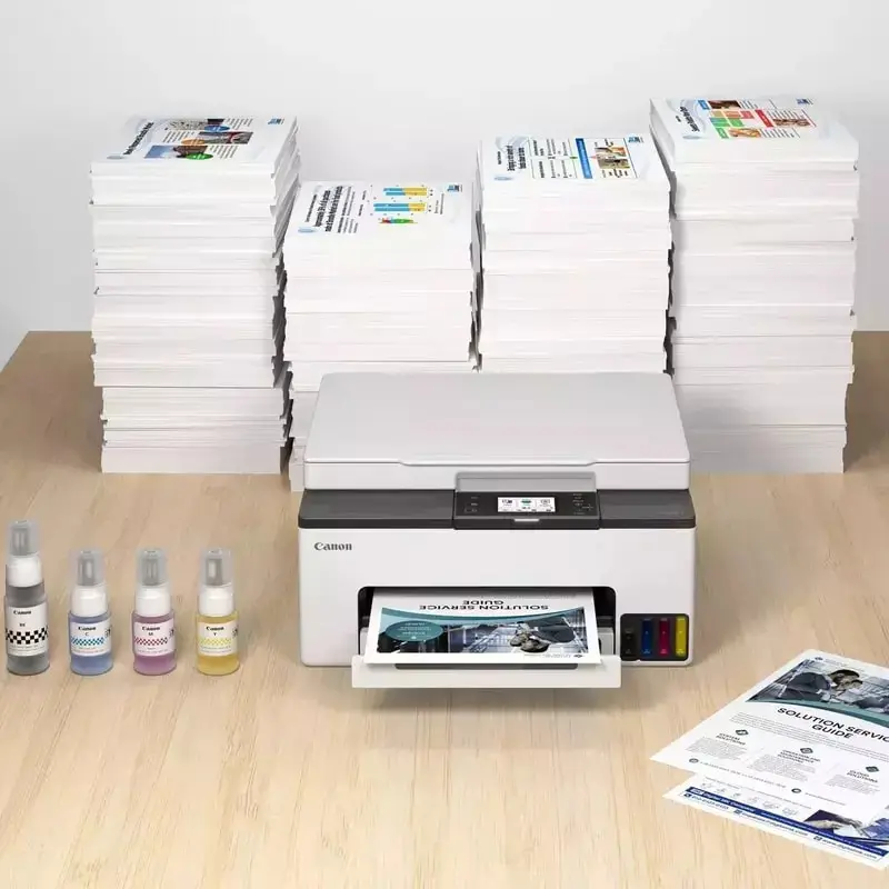 Скористайтеся перевагами офісного друку вдома за допомогою цього компактного принтера «3-в-1» MegaTank. Друкуйте високоякісні ділові документи у великих обсягах швидко завдяки недорогій заміні чорнильниць.