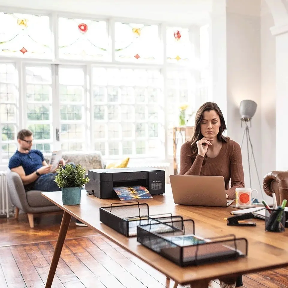 Brother DCP-T425W - струменевий кольоровий БФП із функціями: друку, сканування та копіювання. Пристрій чудово підійде, як для офісного, так і домашнього використання, оснащений модулем Wi-Fi, що дозволить миттєво роздрукувати необхідні файли із телефону, планшету чи інших пристроїв. Головною особливістю являється зручна система заправки чорнил, яка дозволяє друкувати великі об'єми документів із низькими затратами на сторінку.