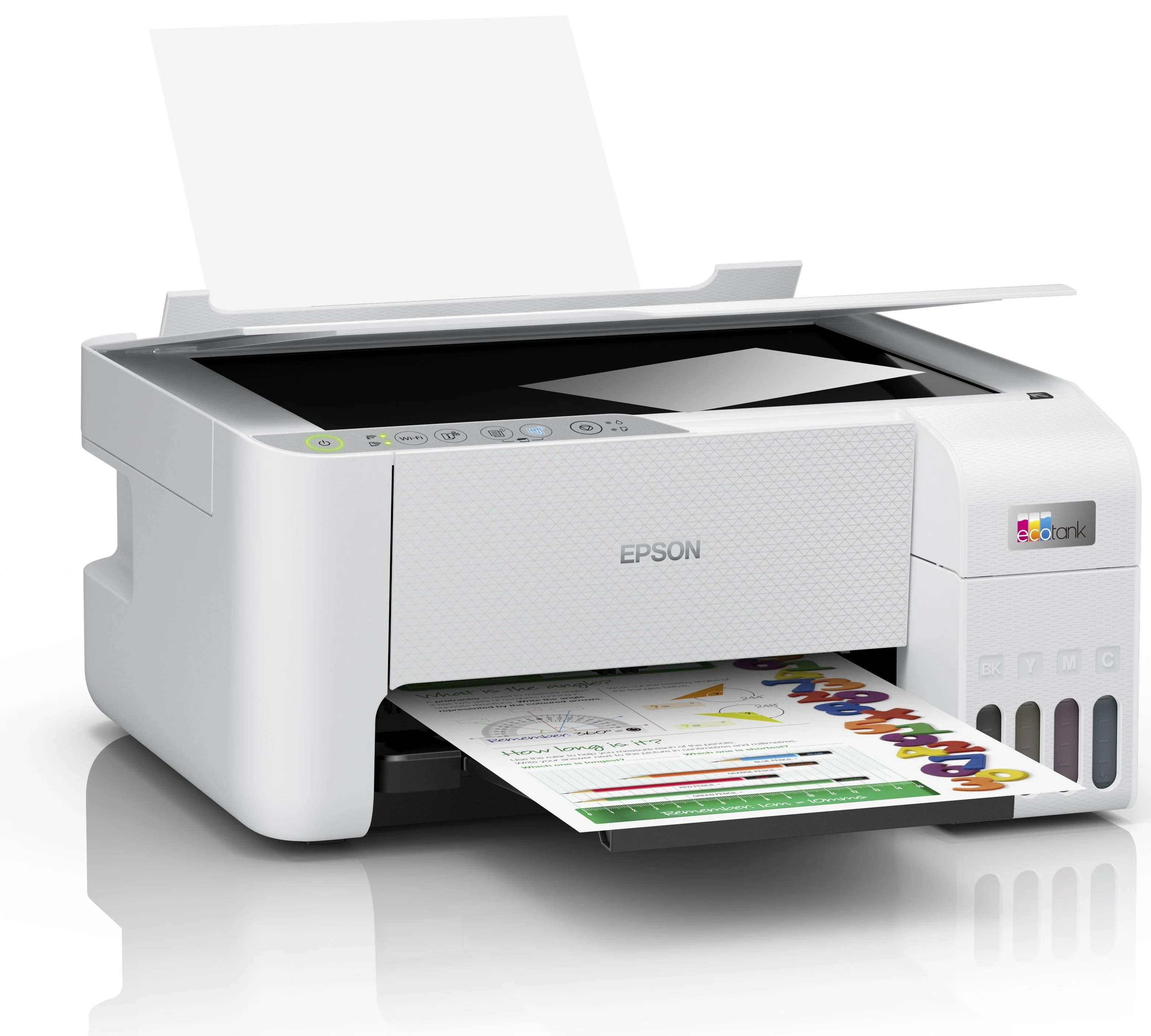 Кольоровий принтер 3-в-1 формату A4 з підтримкою Wi-Fi Direct - це ідеальний багатофункціональний принтер (друк, сканування, копіювання) білого кольору з підтримкою Wi-Fi Direct, який до того ж не потребує заміни картриджів, призначений для користувачів, які бажають отримати високоякісні відбитки за неймовірно низької вартості друку сторінки. Завдяки задньому лотку для паперу на 100 аркушів, друку фотографій без полів (до 10 x 15 см) і швидкості друку до 10 сторінок на хвилину, можна легко та швидко виконати низку завдань.