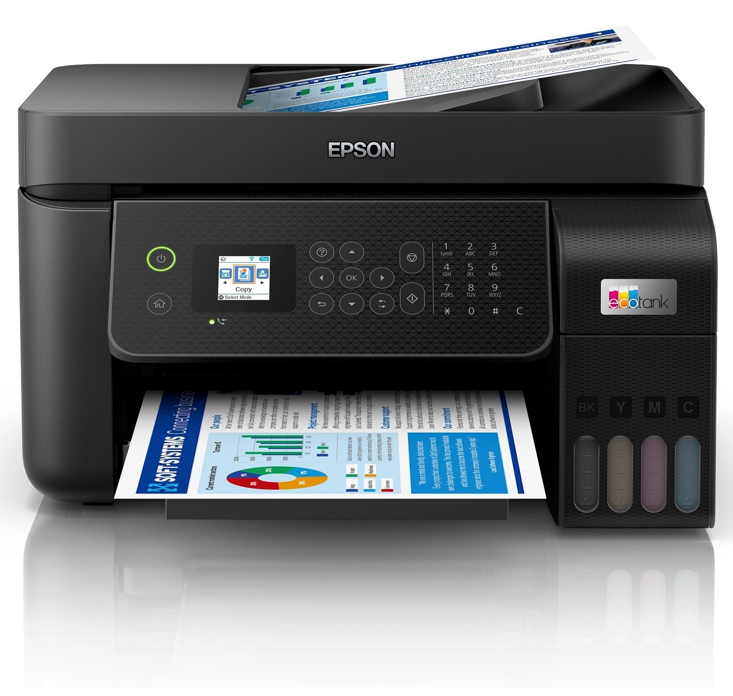 Epson L5290 – це Принтер-Сканер-Копір-Факс серії Epson EcoTank. Це МФУ відповідає всім вимогам сучасних бізнес-користувачів за рахунок широкого функціоналу, унікального дизайну та вдосконаленої системи заправки. Завдяки фронтальному розташуванню ємностей користувачам простіше відстежувати рівень чорнила, що залишилося. Крім того, подібна конструкція робить новинки до 30% компактнішими. Удосконалена система прокачування чорнила прискорює процедуру первинної ініціалізації принтера вдвічі.