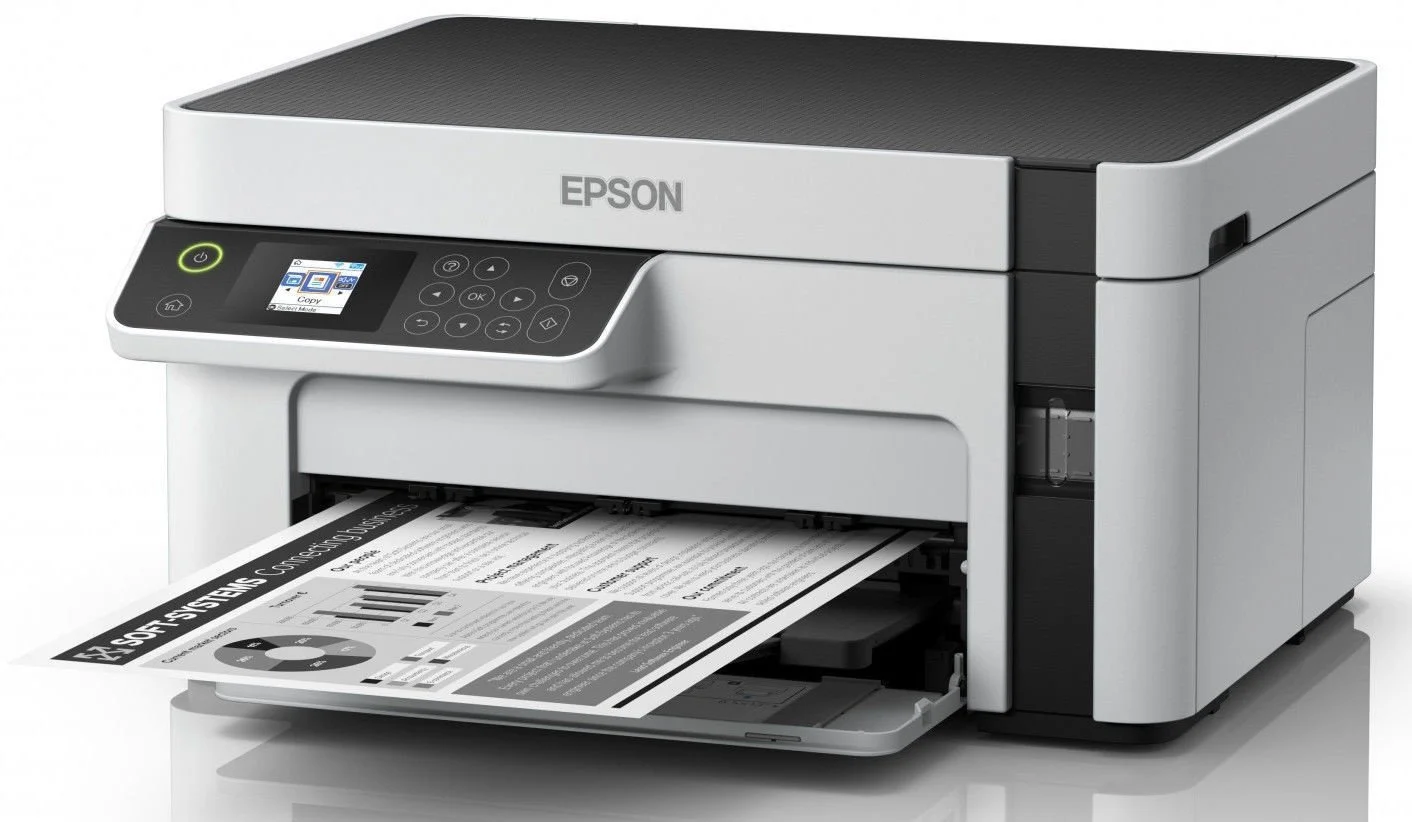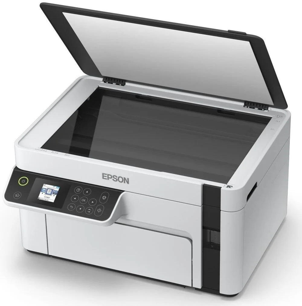 Epson M2120 - це компактний монохромний пристрій 3 в 1 (принтер-сканер-копір) з підтримкою підключення по Wi-Fi і Wi-Fi Direct. Як і інші моделі серії «Фабрика друку» БФП Epson M2120 використовує вбудовані ємності для чорнил, замість картриджів. Крім того, «Фабрика друку» використовує запатентовану п'єзоелектричну технологію Epson Micro Piezo, яка, на відміну від інших технологій друку, не вимагає нагріву чорнила, а значить, споживає значно менше електроенергії.