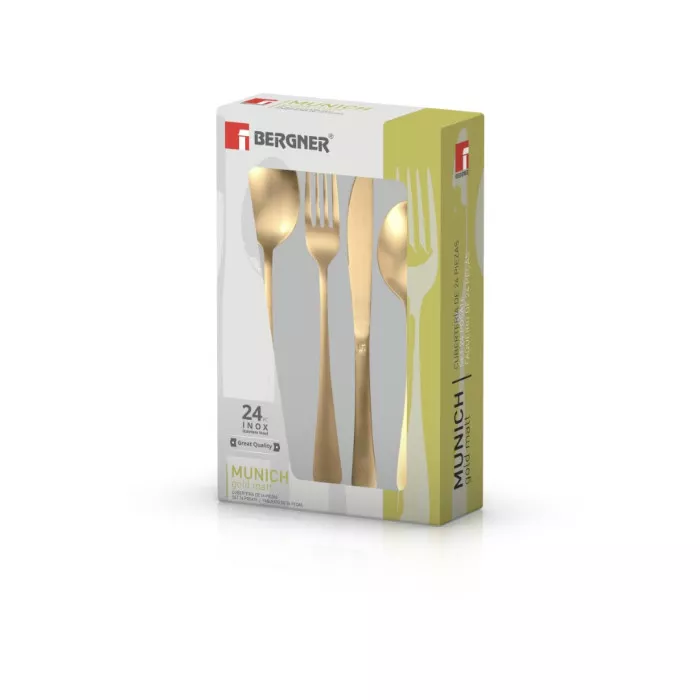 BG-5134-GD Набір столових приладів Bergner Munich gold matt, 24 предмети (BG-5134-GD)