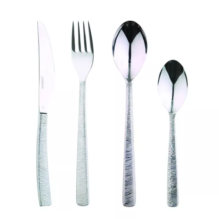 Комплектація: 6 шт. ножів їдалень; 6 шт. супових ложок; 6 шт. виделок; 6 шт. чайних ложок;