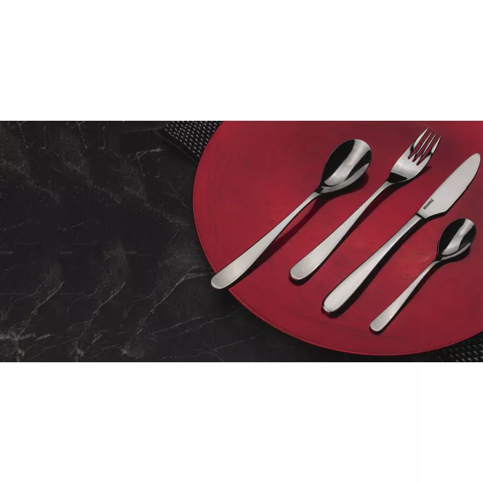 Комплектація: 6 шт. ножів їдалень; 6 шт. супових ложок; 6 шт. виделок; 6 шт. чайних ложок;