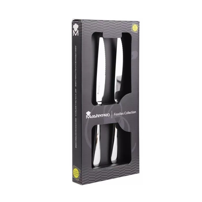 Насолоджуйтесь ідеальним розрізом вашого улюбленого стейка з набором ножів MasterPro Foodies collection. Виготовлені з високоякісної нержавіючої сталі, ці ножі забезпечують тривалу гостроту і стійкість до корозії.