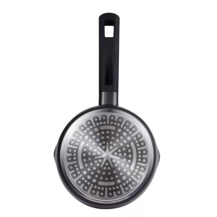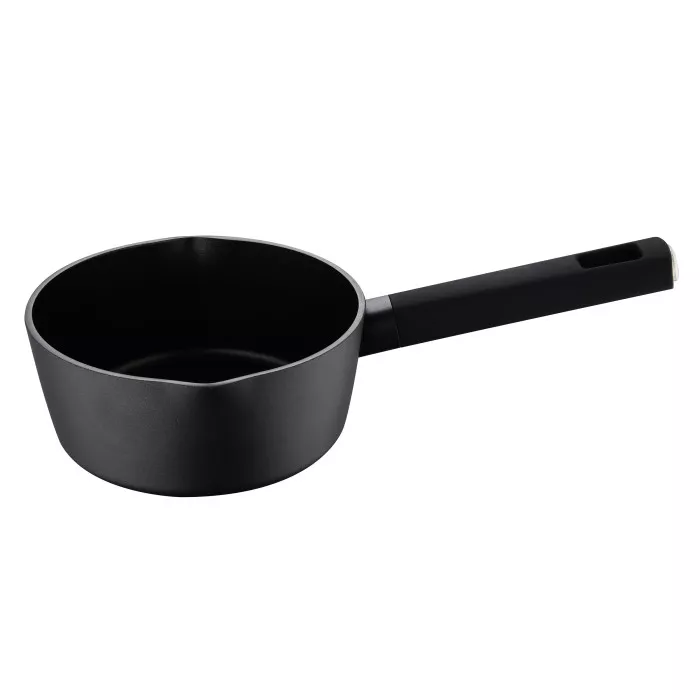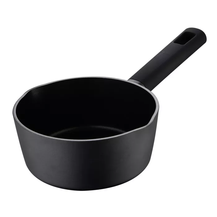 Цей ківш діаметром 16 см і висотою 7.5 см виготовлений з кованого алюмінію, що забезпечує рівномірний нагрів і тривалу службу. Чорний колір додає стильності, а антипригарне покриття ILAG PREMIUM полегшує очищення. Незважаючи на високу якість, миття в посудомийній машині не рекомендується. Ківш сумісний з усіма типами плит, включаючи індукційні.]]>